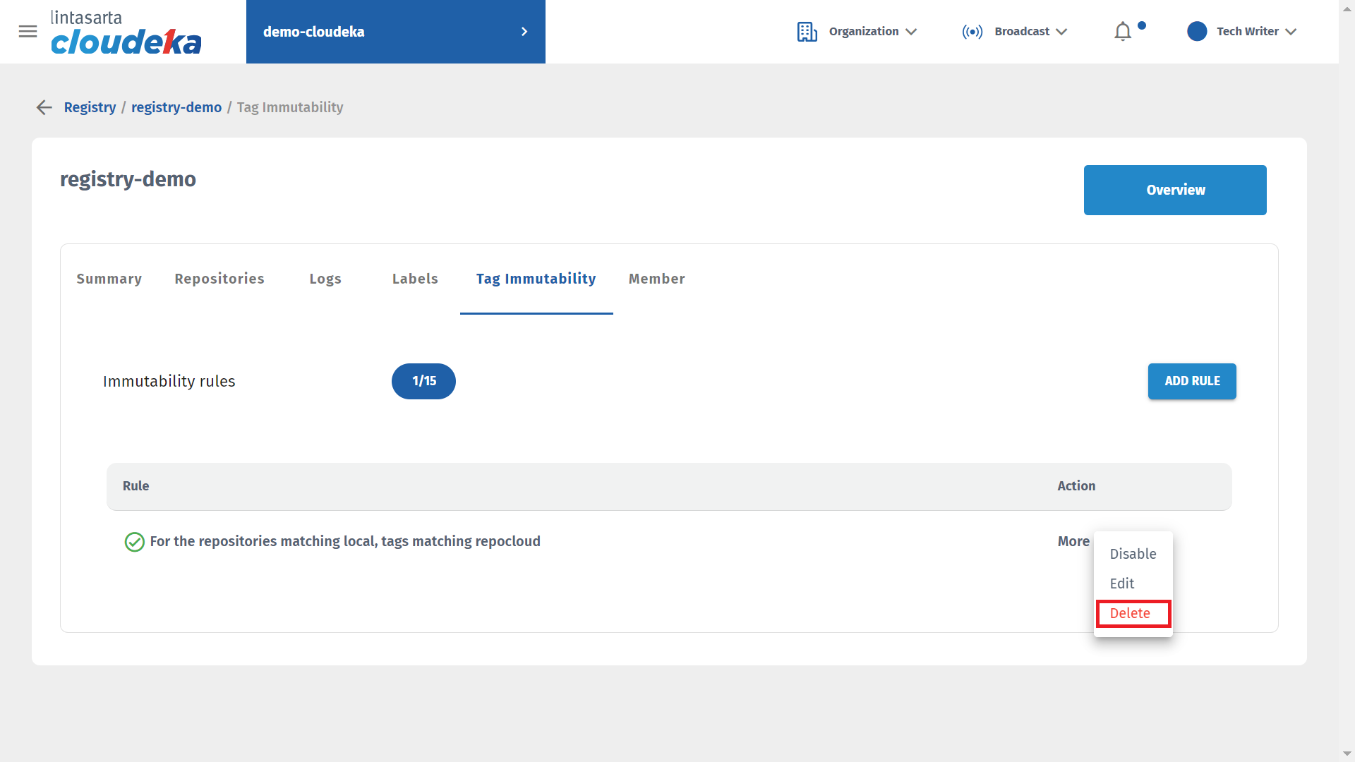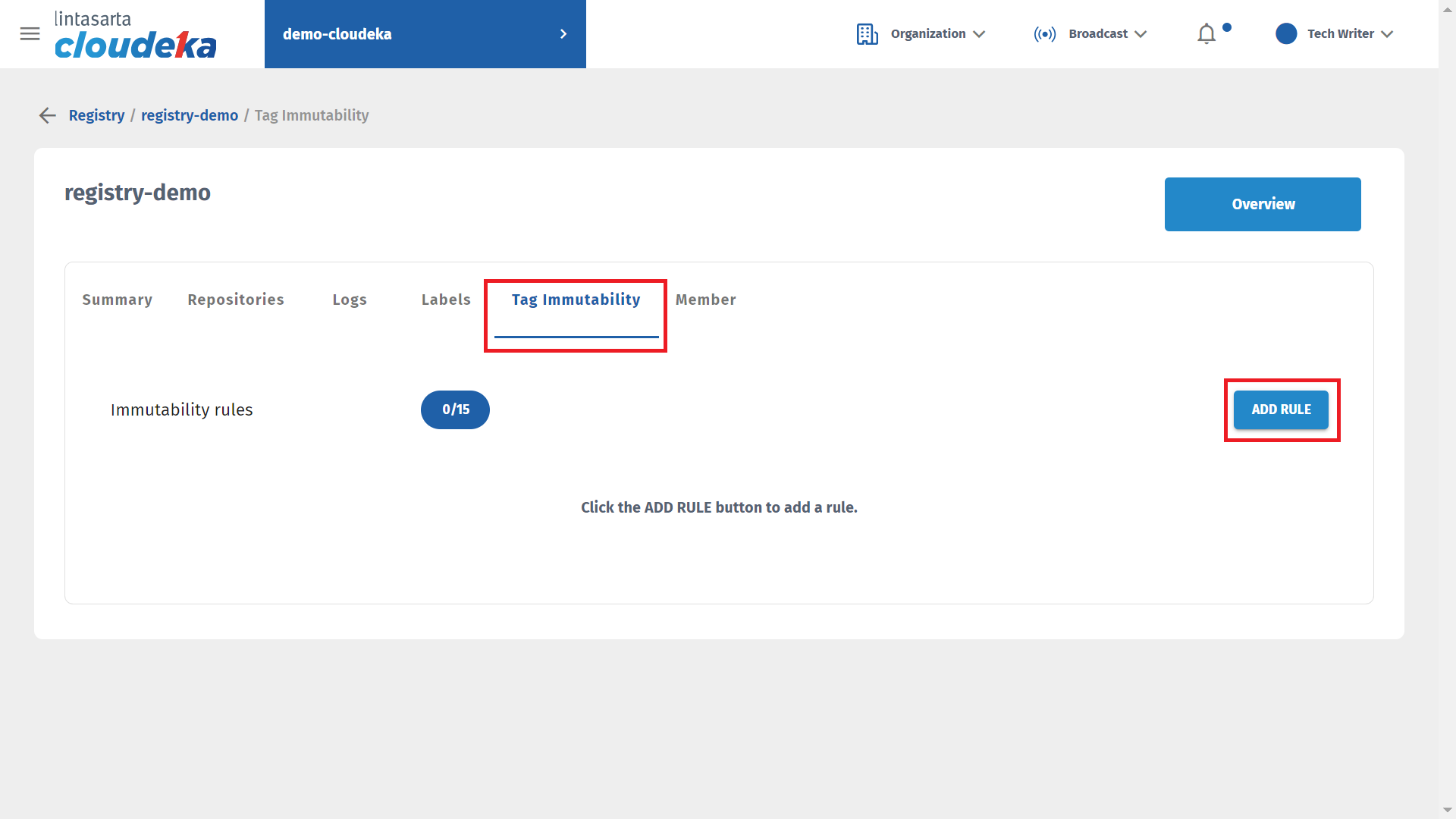 * Select the Immutability Tag tab in the Registry Deck and click the Add Rule button.