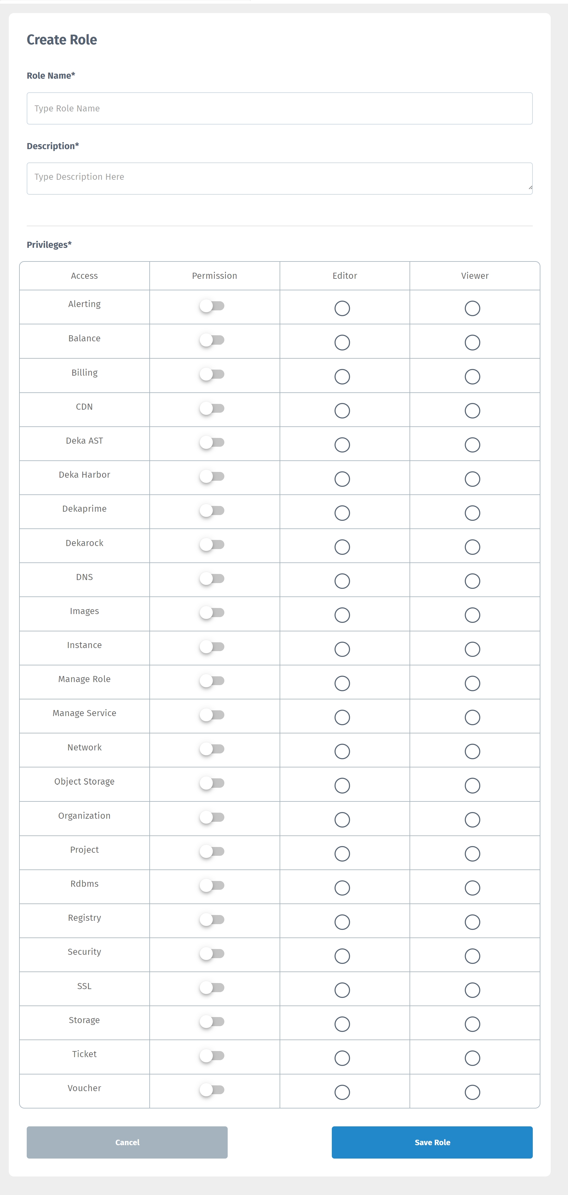 If you have finished filling out the form, click the Save Role button to save or cancel if you don't want to create a role.