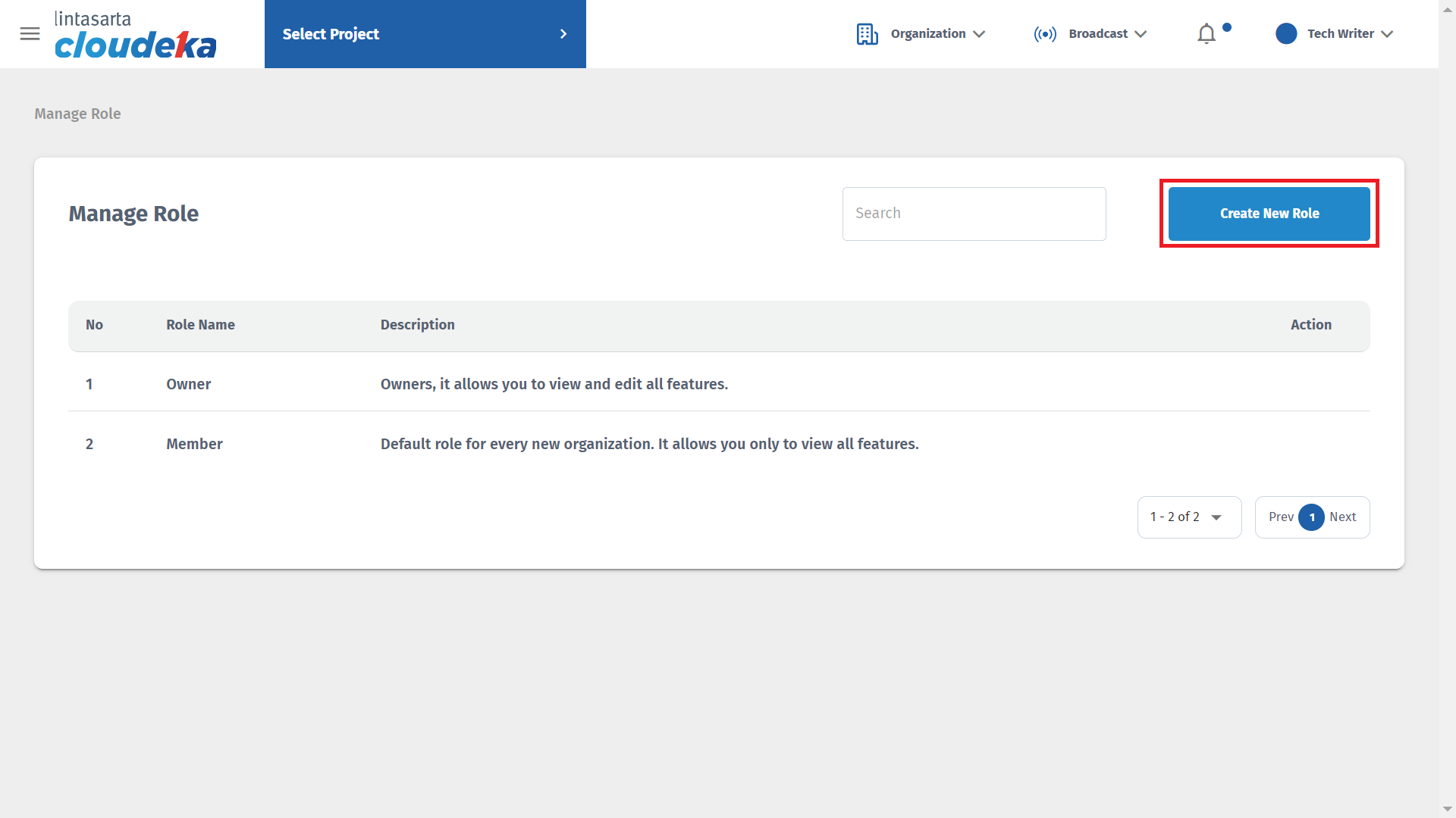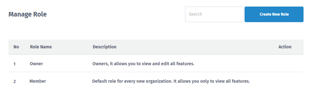 2. **Member,** default role for each organization, this role only allows you to see all features.
