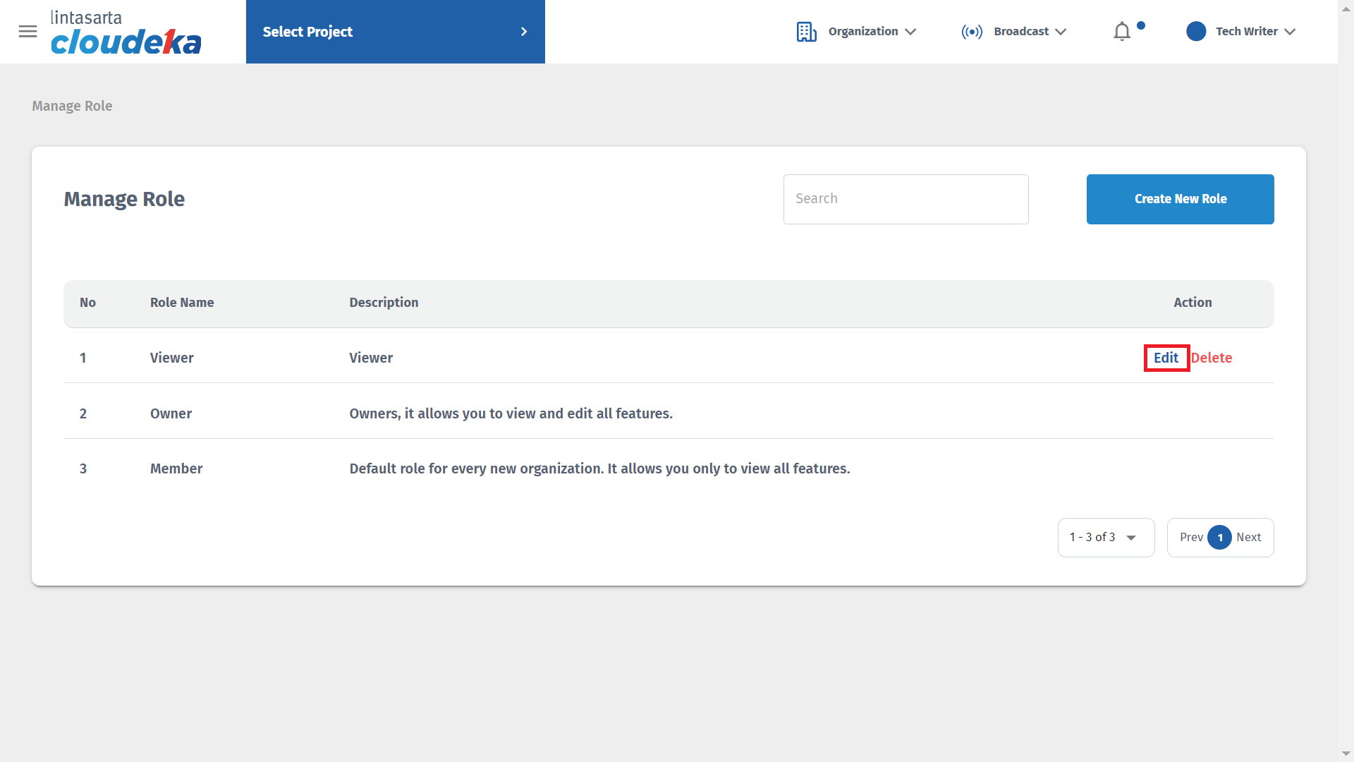 If you want to change the Role data, on the **Manage Role** page there is an Action column, click the **Edit** button.