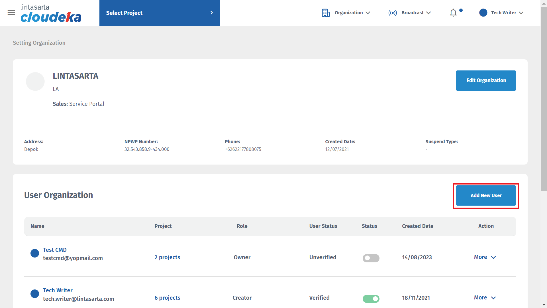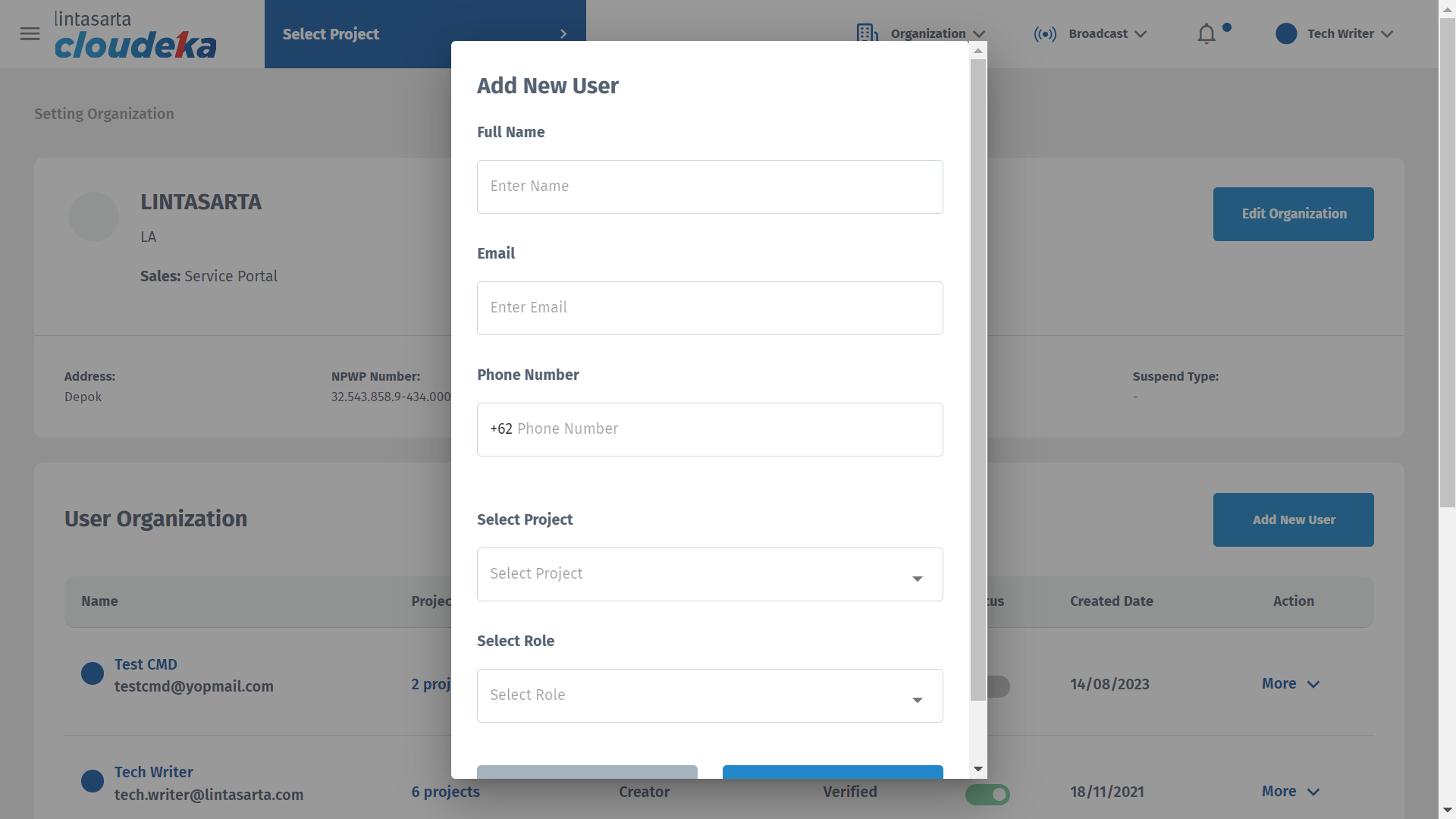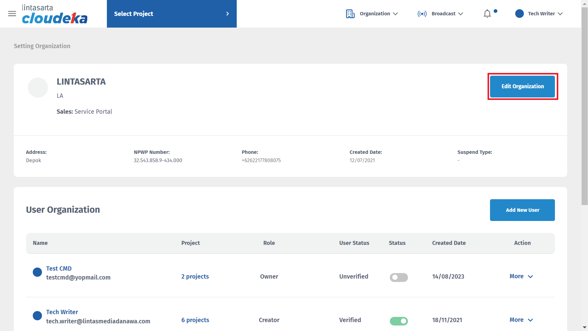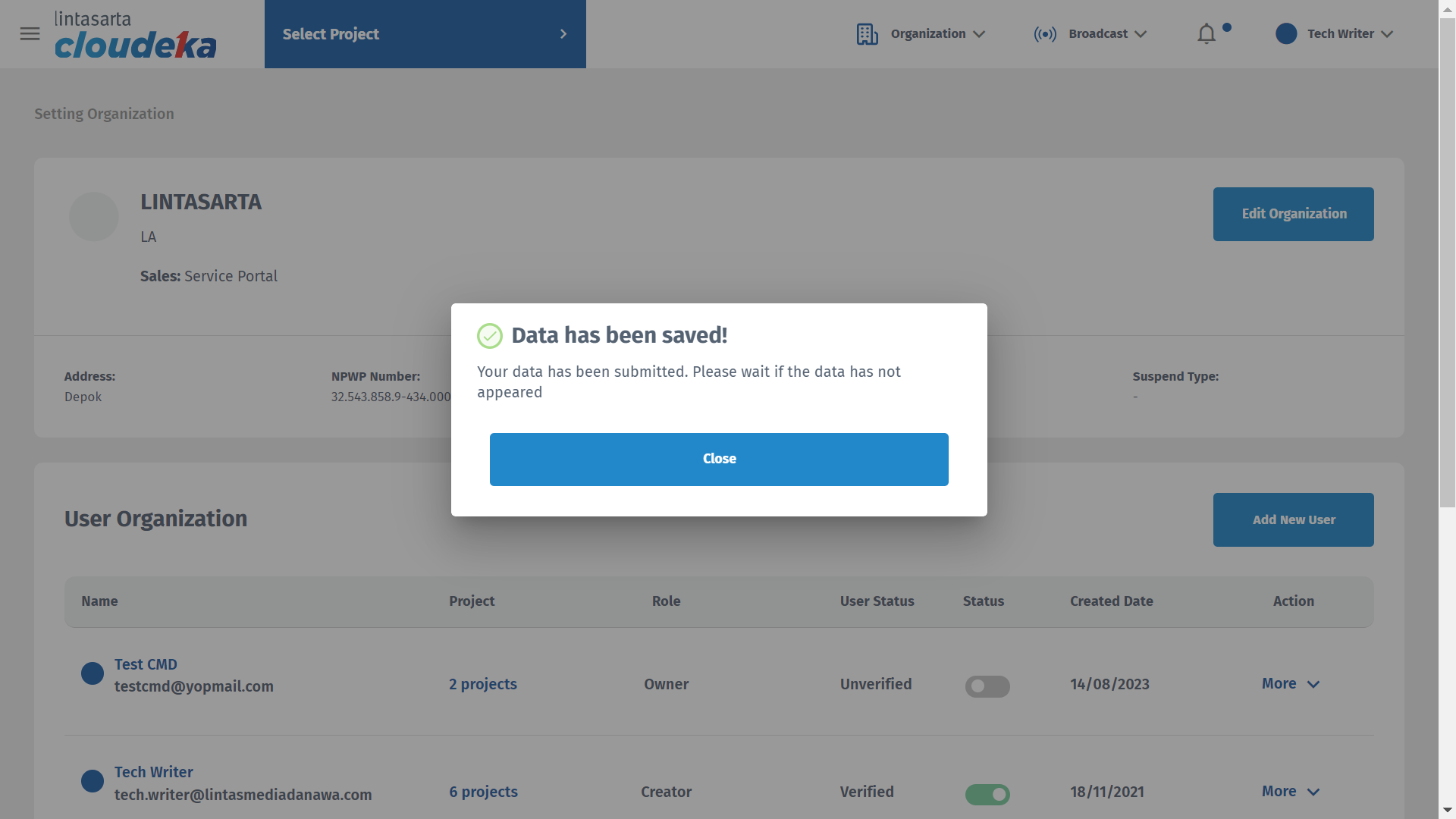 This menu is used to manage organizational data that is already stored in the Cloudeka application.
