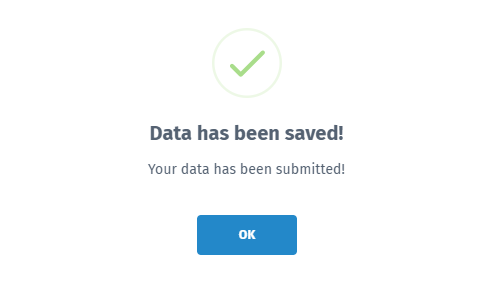 If the data is successfully saved, a pop up will appear "Data has been saved! Your data has been submitted".