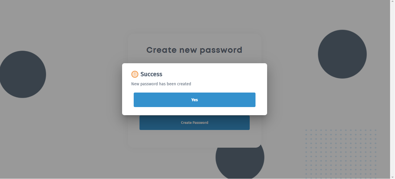 If the new password is successfully saved, a pop up will appear "Success. New password has been created"