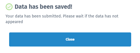 If the data is successfully saved, a pop up will appear "Data has been saved! Your data has been submitted. Please wait if the data has not appeared".