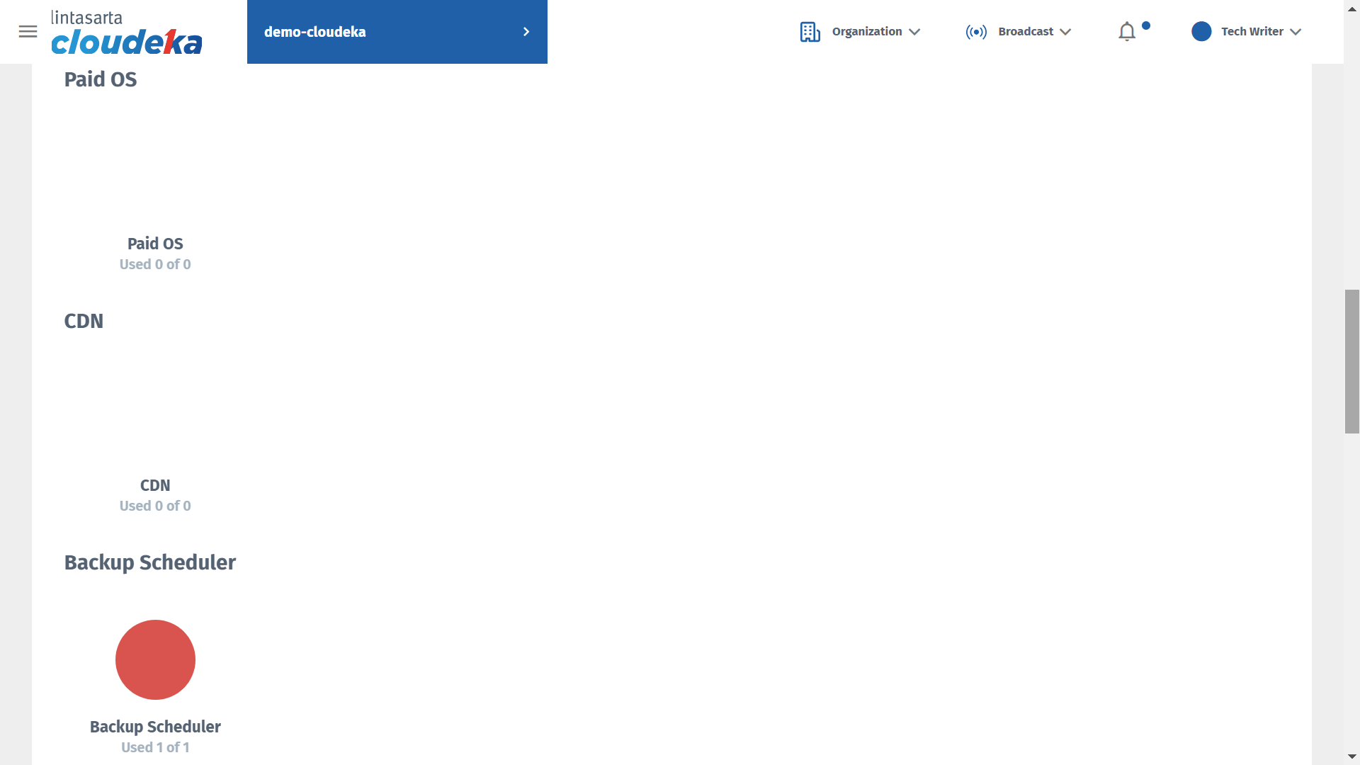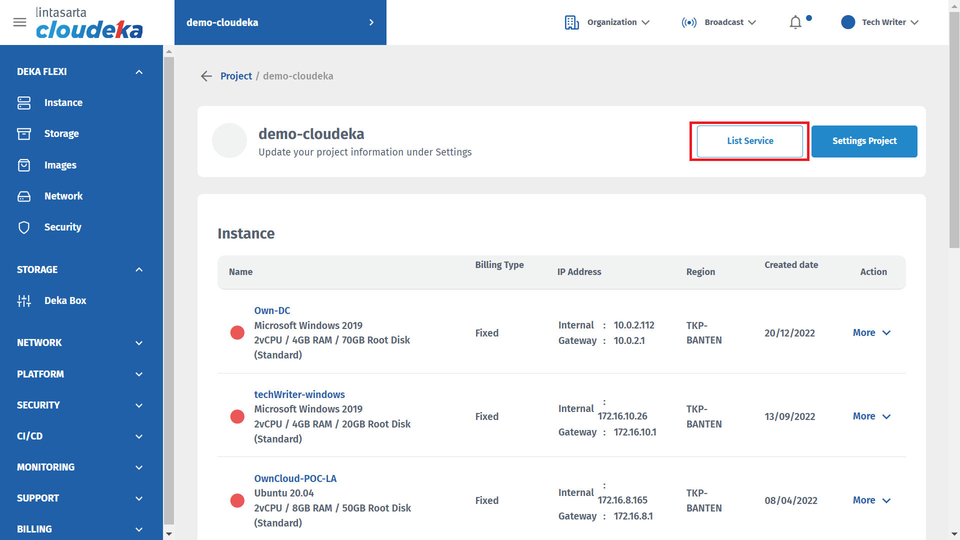 * On project list page, click the project name that you want to see it service limit information. **For example**, click **demo-cloudeka.**
