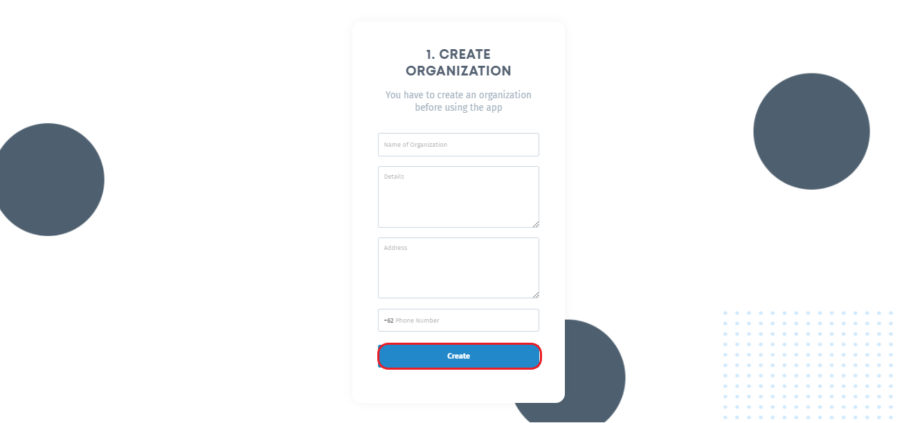 For new users, you will be asked to fill in the Create Organization form, namely: