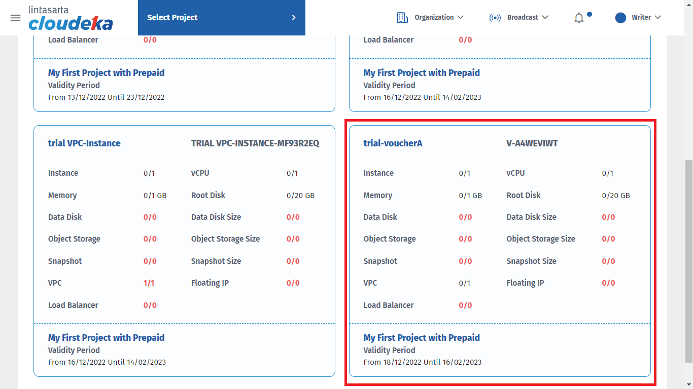 If the trial voucher has expired, it will be automatically deleted from the voucher page, so Cloudeka Portal Services that use a trial voucher cannot be used.