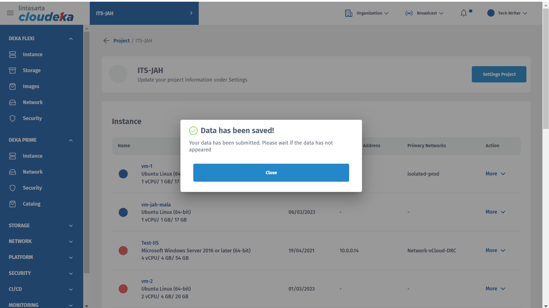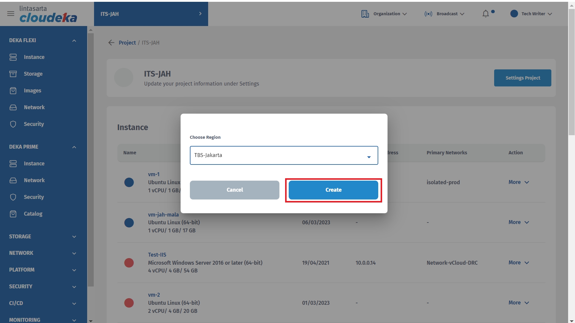 On the Cloudeka portal service page, select the Instance menu in Deka Flexi.