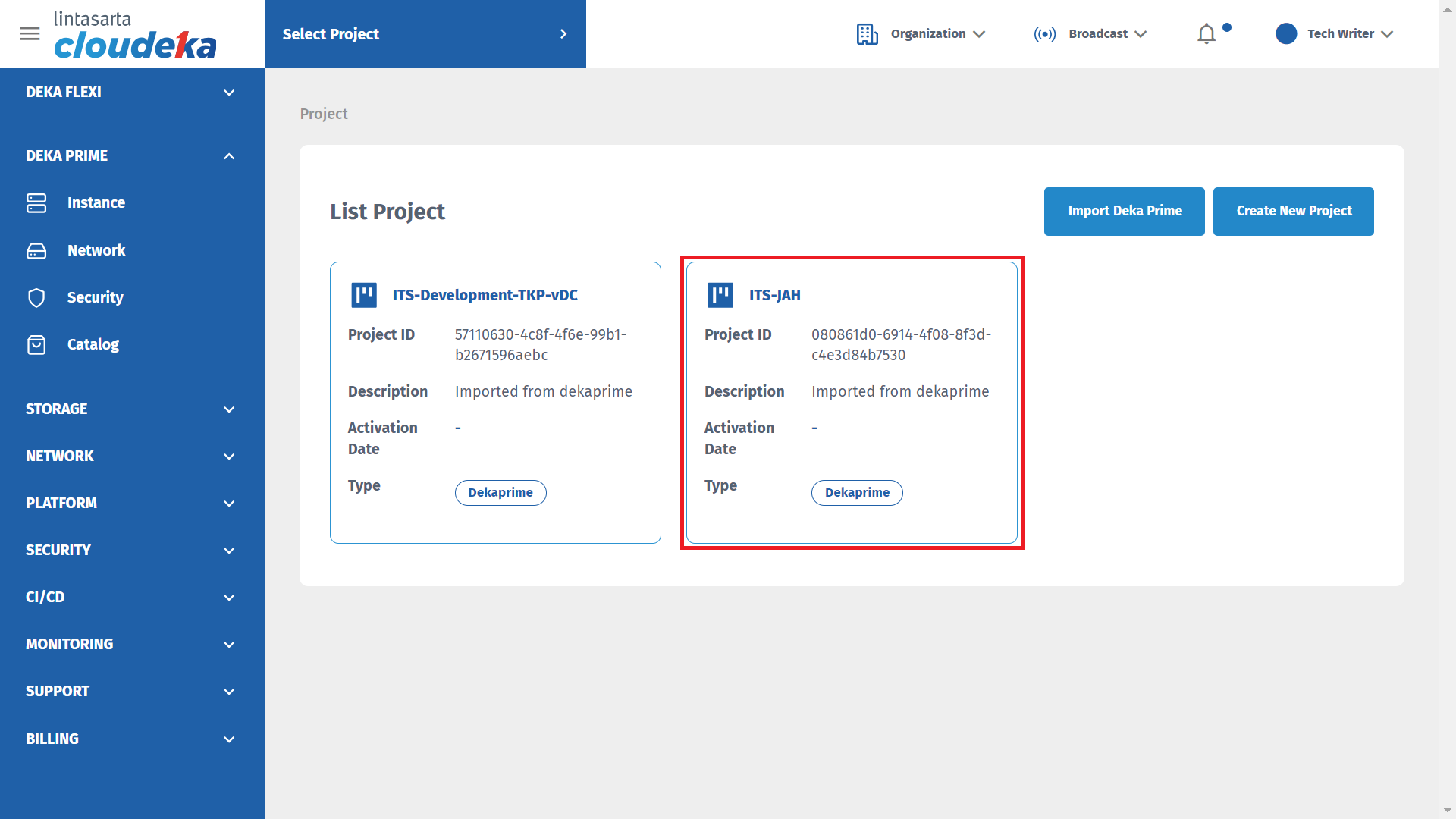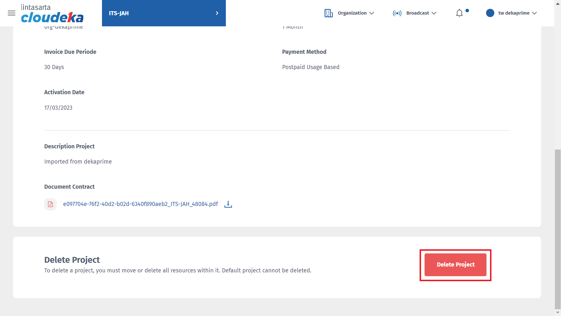 Here are the steps to remove the project on Deka Prime: