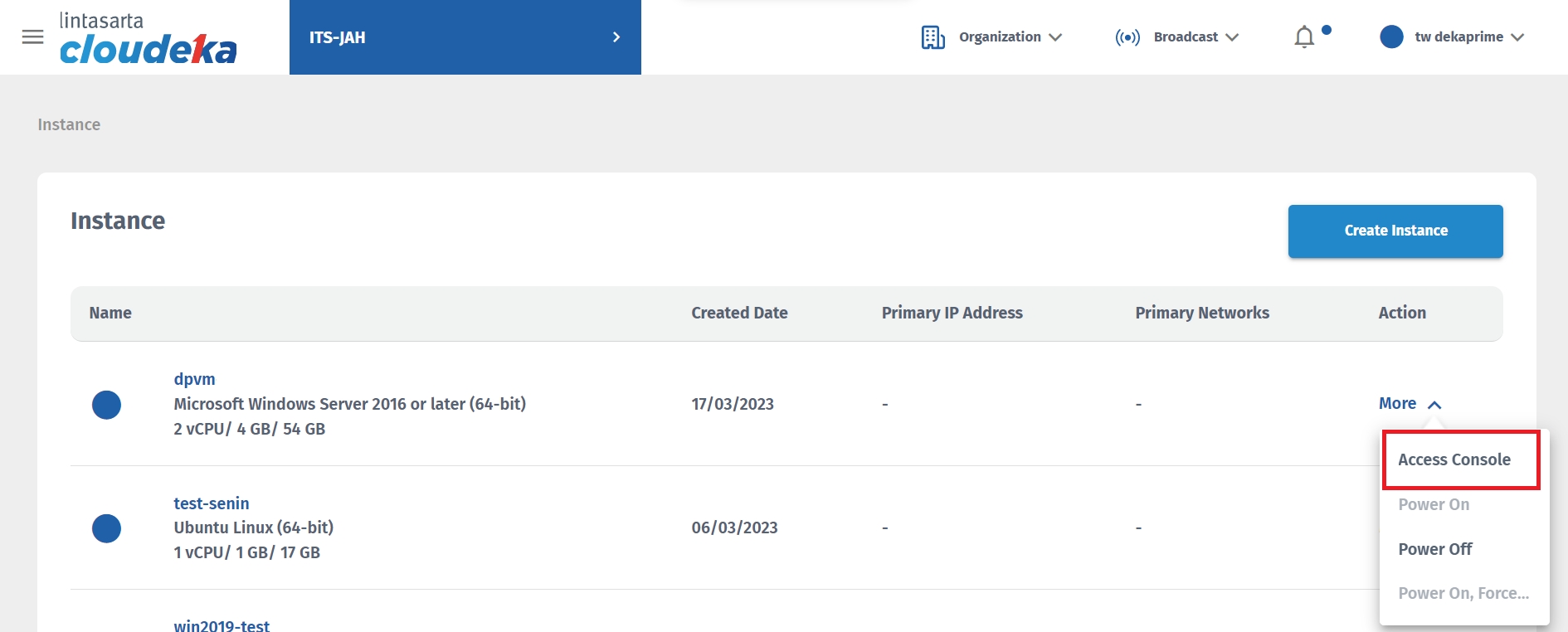 To be able to access an instance on the Cloudka Portal service by following these steps: