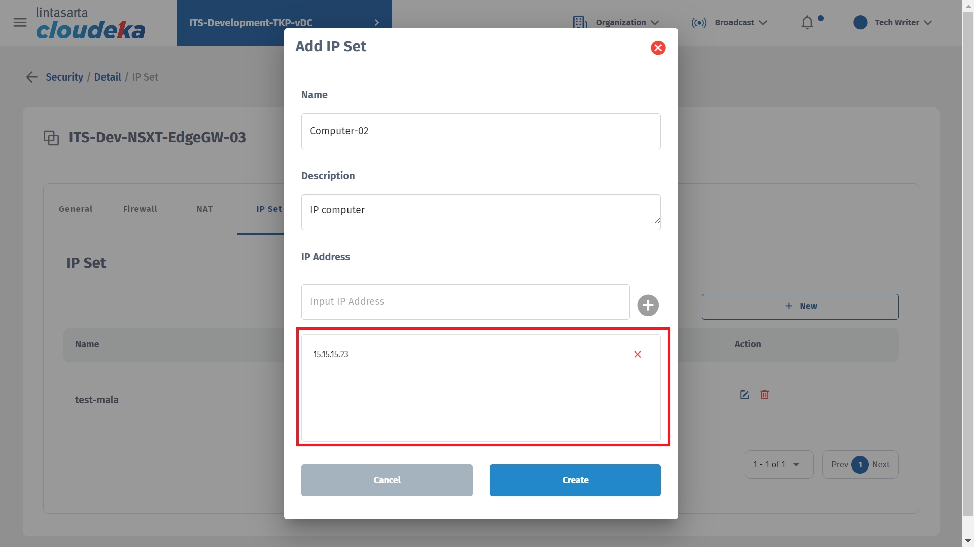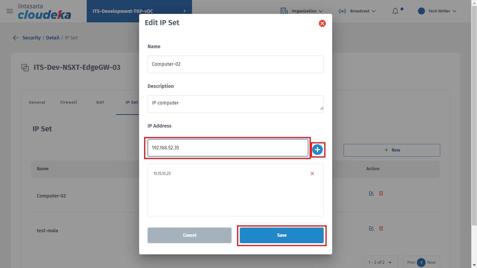 - The addition of the IP address was successful and entered into the IP Set table list.