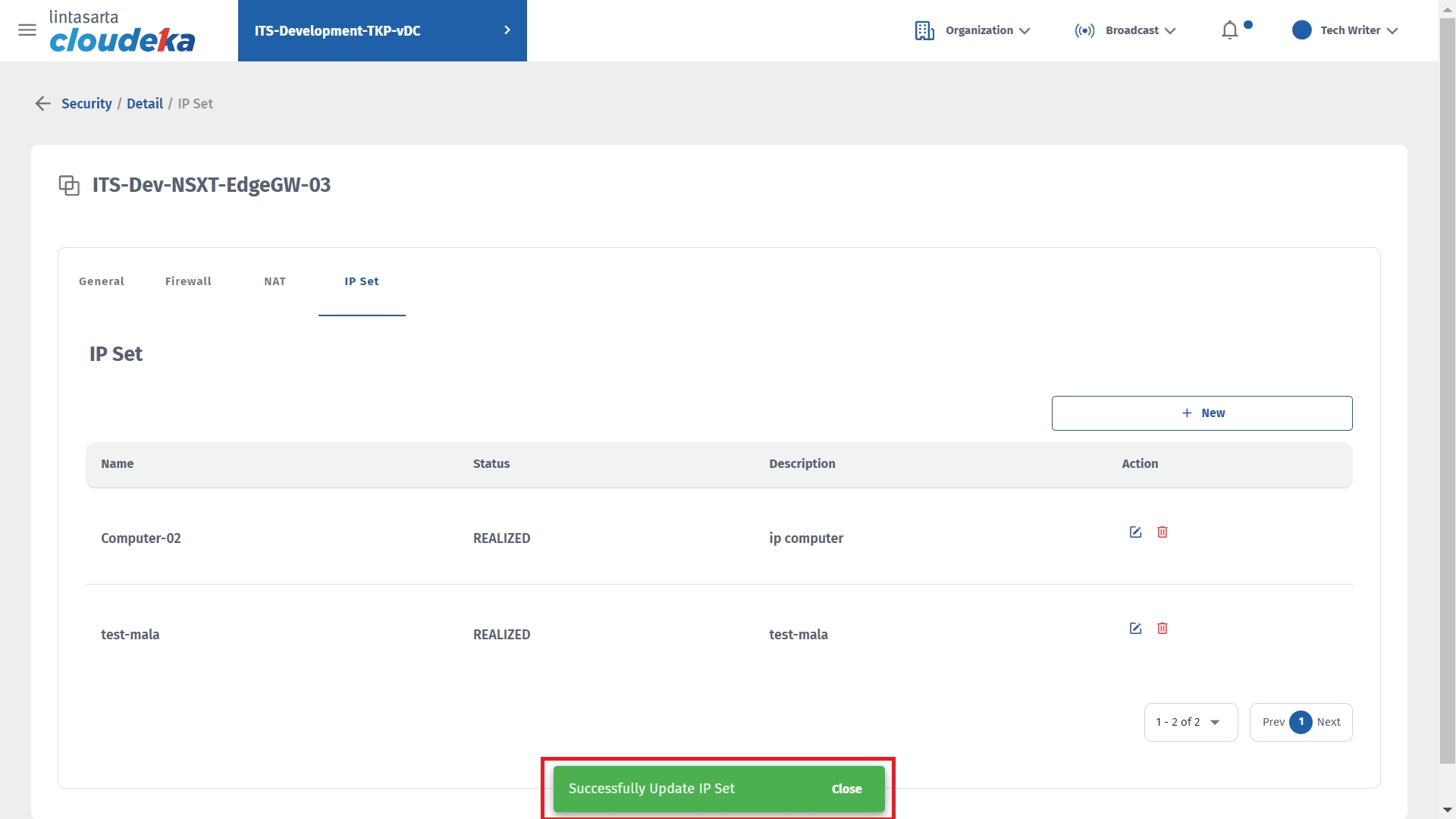 The notification Successfully updated IP Set appears.