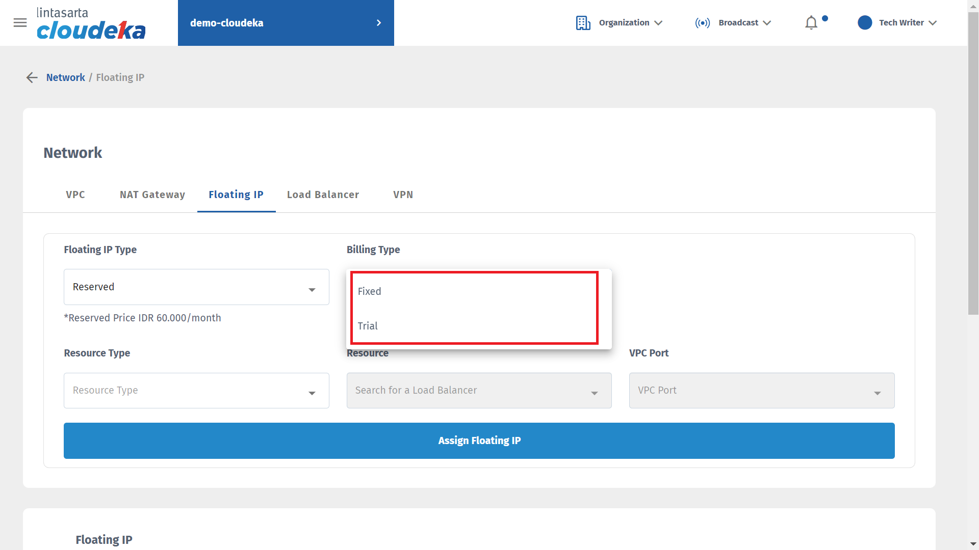 <figure><img src="https://putri.box.cloudeka.id/cloudeka-assets/static/images/6network/6.35%20Network%20Page%20-%20Billing%20Type.png" alt=""><figcaption><p>Network Page - Floating IP - Billing Type</p></figcaption></figure>