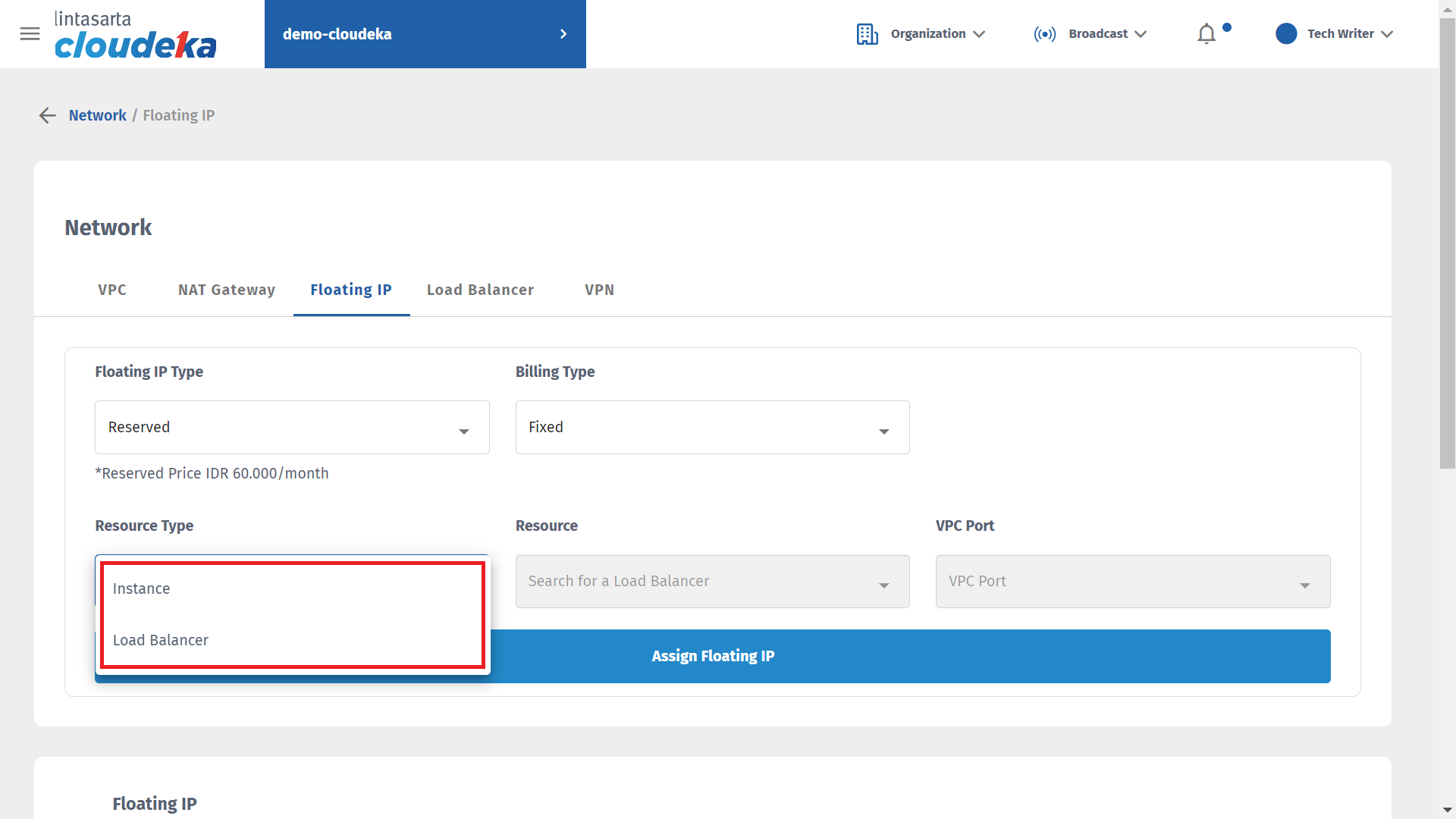 <figure><img src="https://putri.box.cloudeka.id/cloudeka-assets/static/images/6network/6.36%20Network%20Page%20-%20Resource%20Type.png" alt=""><figcaption><p>Network Page - Floating IP - Resource Type</p></figcaption></figure>