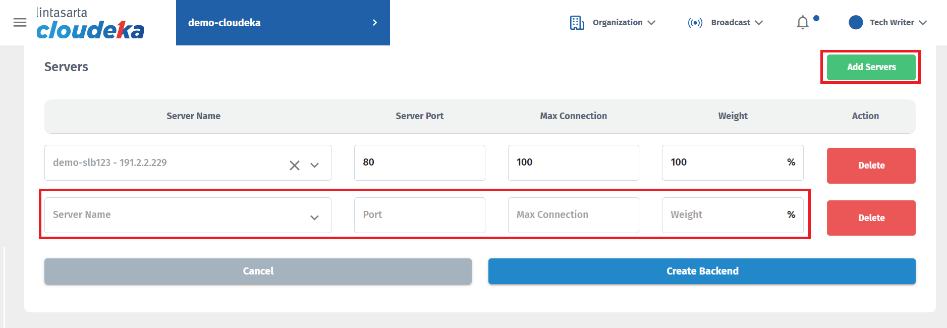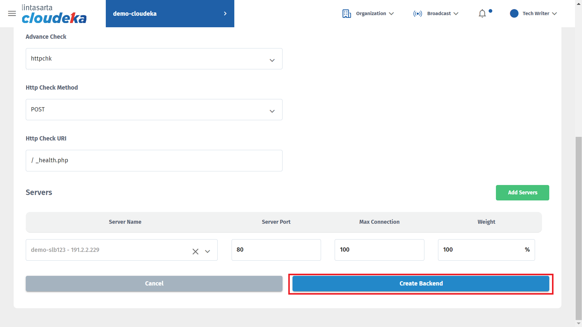 Here are the steps to add Backend configuration in Deka SLB on the Cloudeka portal service: