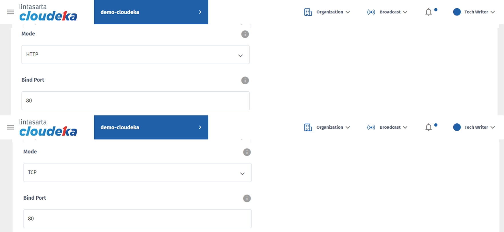 If the Mode column selects the HTTP or TCP protocol, the following columns will appear.
