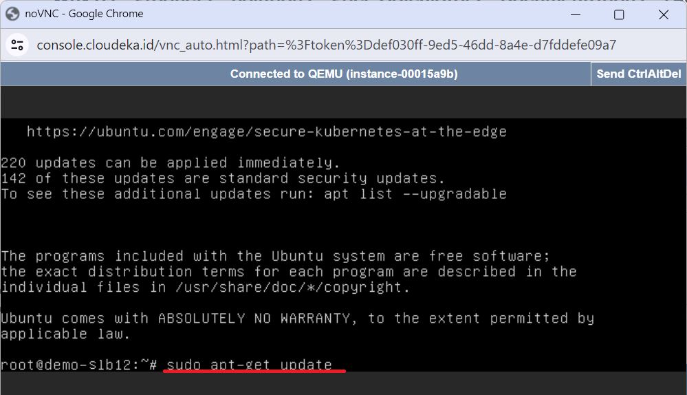 The VM on the instances that have been created are demo-slb1 and demo-slb2, console access on the demo-slb1 and demo-slb2 VMs. Press the More button then select Access Console.