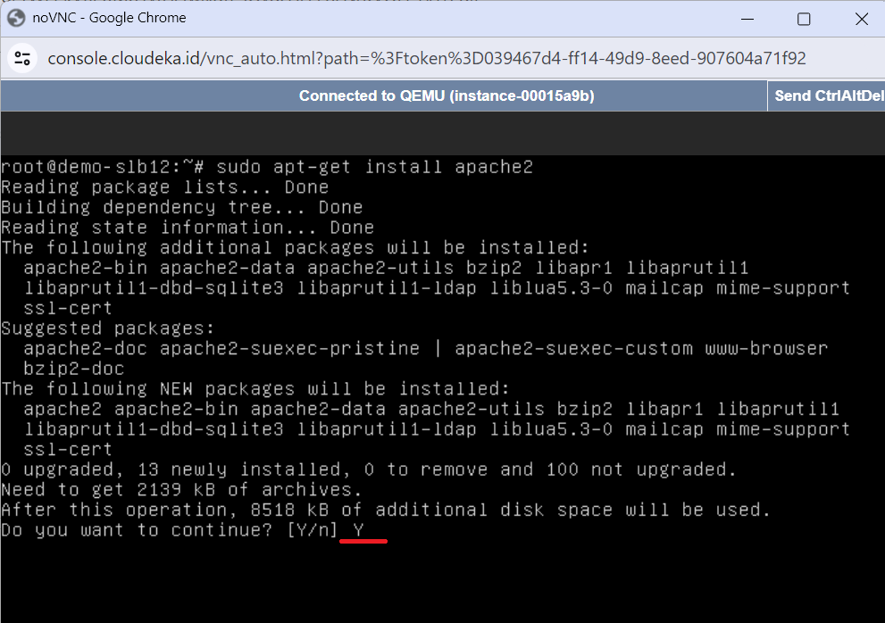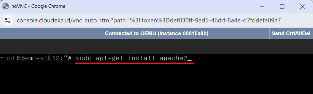 Enter the following command to install the Apache HTTPServer package on the VM.