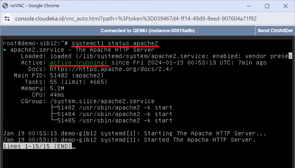 After you have finished installing Apache, next, check the status that Apache has been installed, enter the command below.