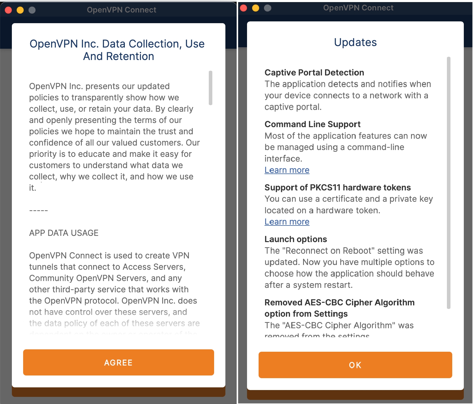 Open the OpenVPN client application that you just installed in OpenVPN on your computer. Press the Agree and OK buttons. OpenVPN can now be run on your computer