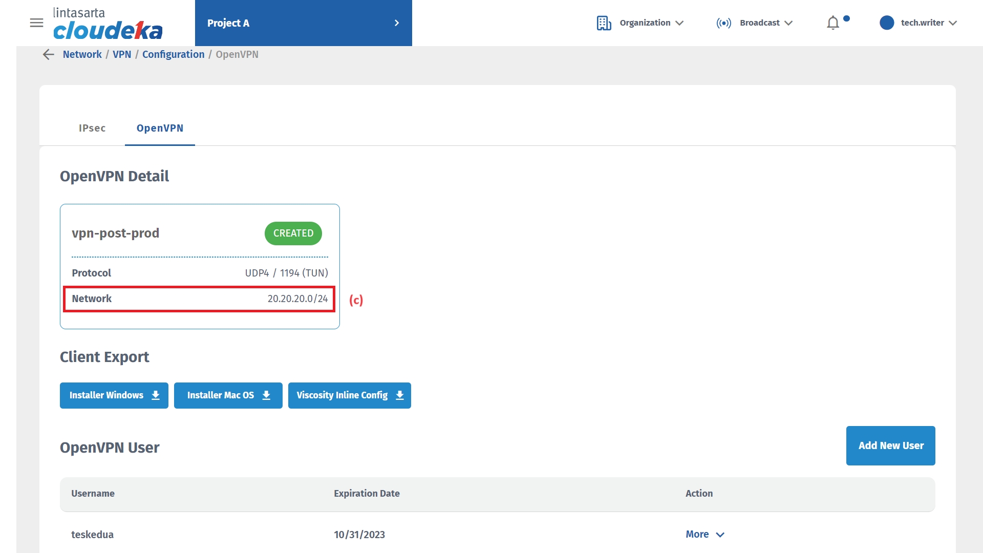 Enter the Username and Password used according to the OpenVPN User list in Project A.