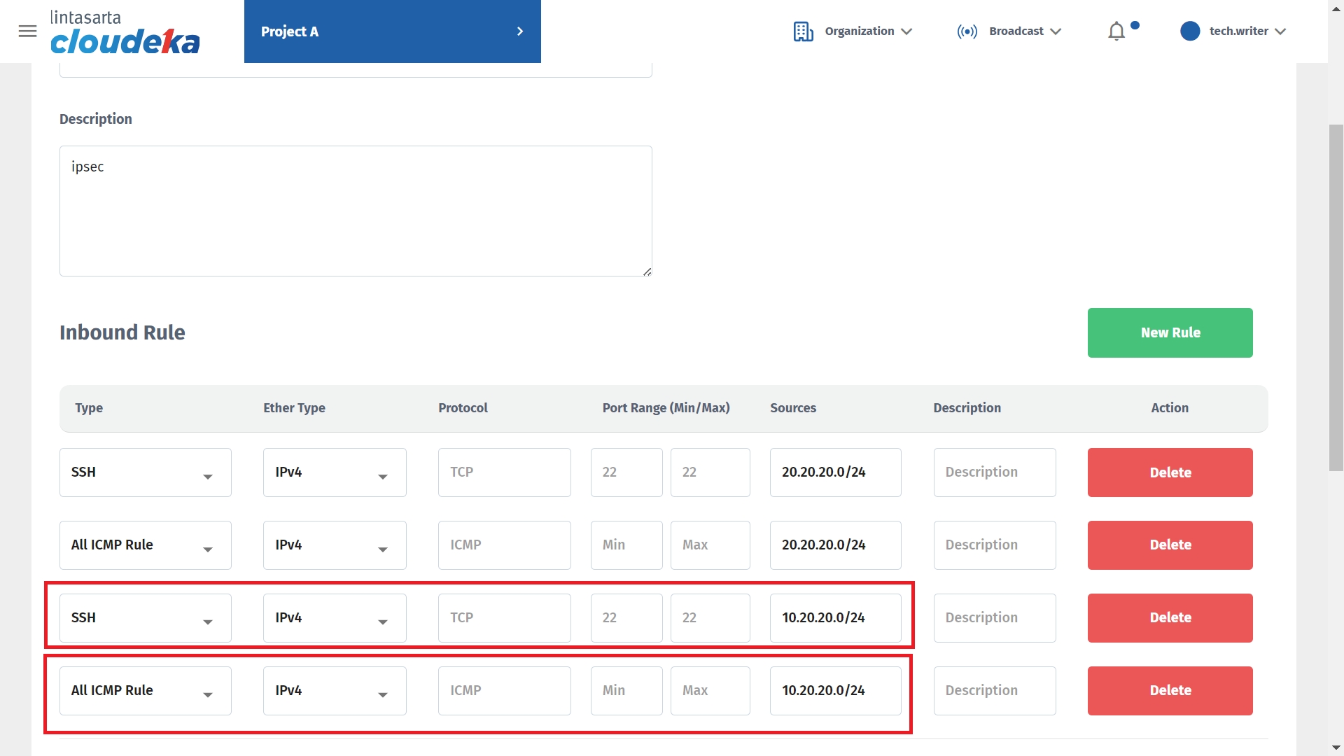 Do the same steps to conImage Security on Project B by adding the subnet IP address on Project A, namely 10.10.10.0/24.
