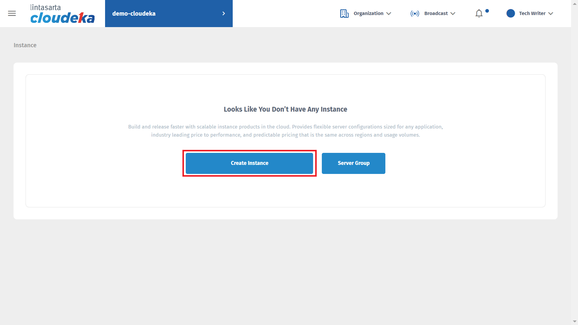On the Instances page, click Create Instance.