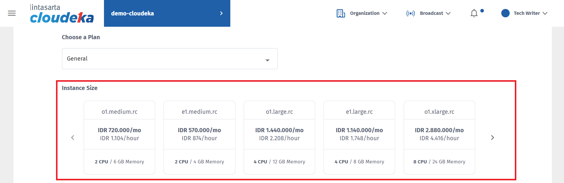 c1.xxxLarge.rc with the size 4vCPU dan ukuran memori 32 GB,