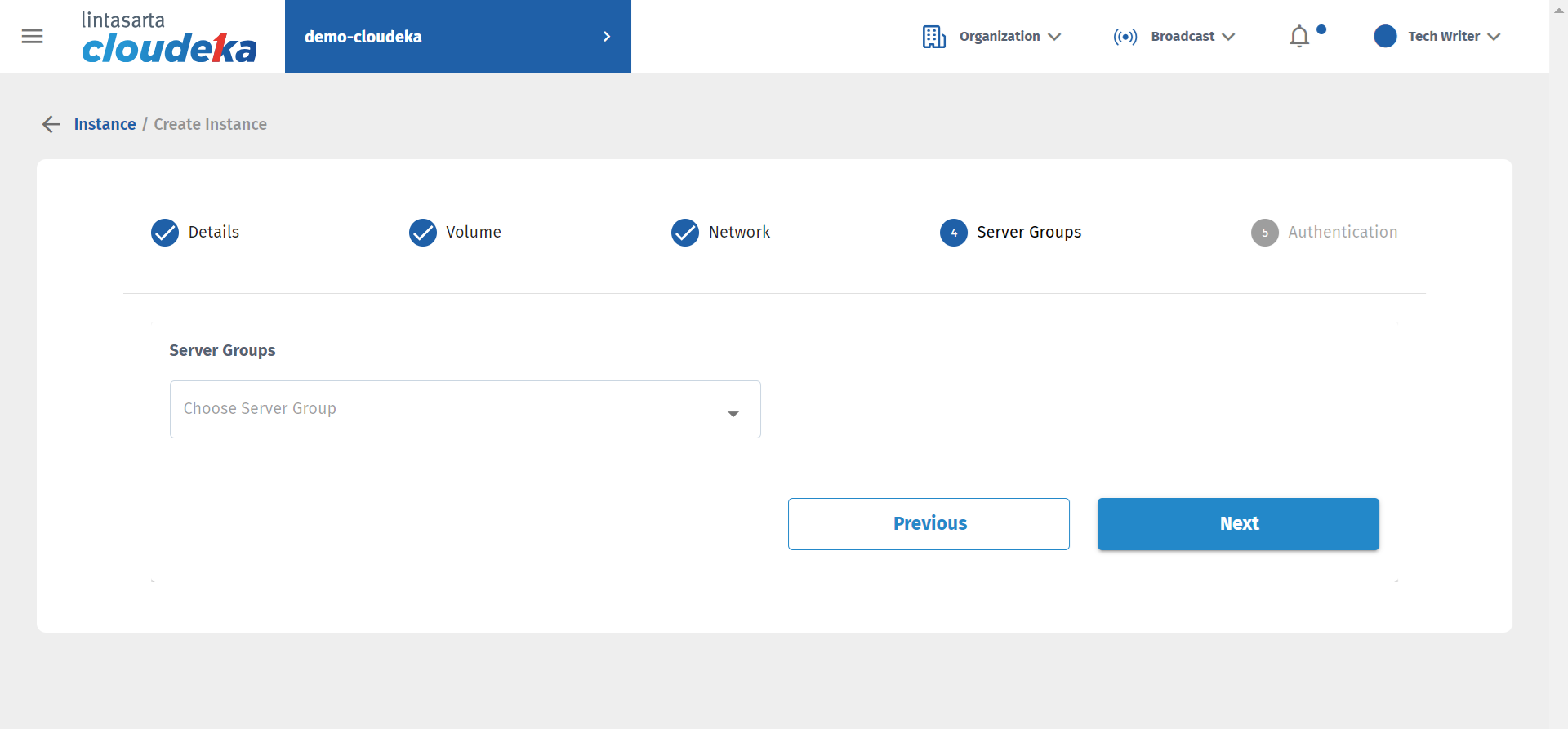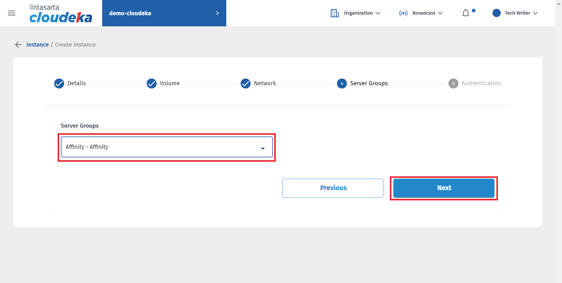 In the fourth stage, namely Server Group, there is a Server Group column. Make sure you have created the Server Group that the VM will use. For further explanation of the Server Group that will be used, please click here.