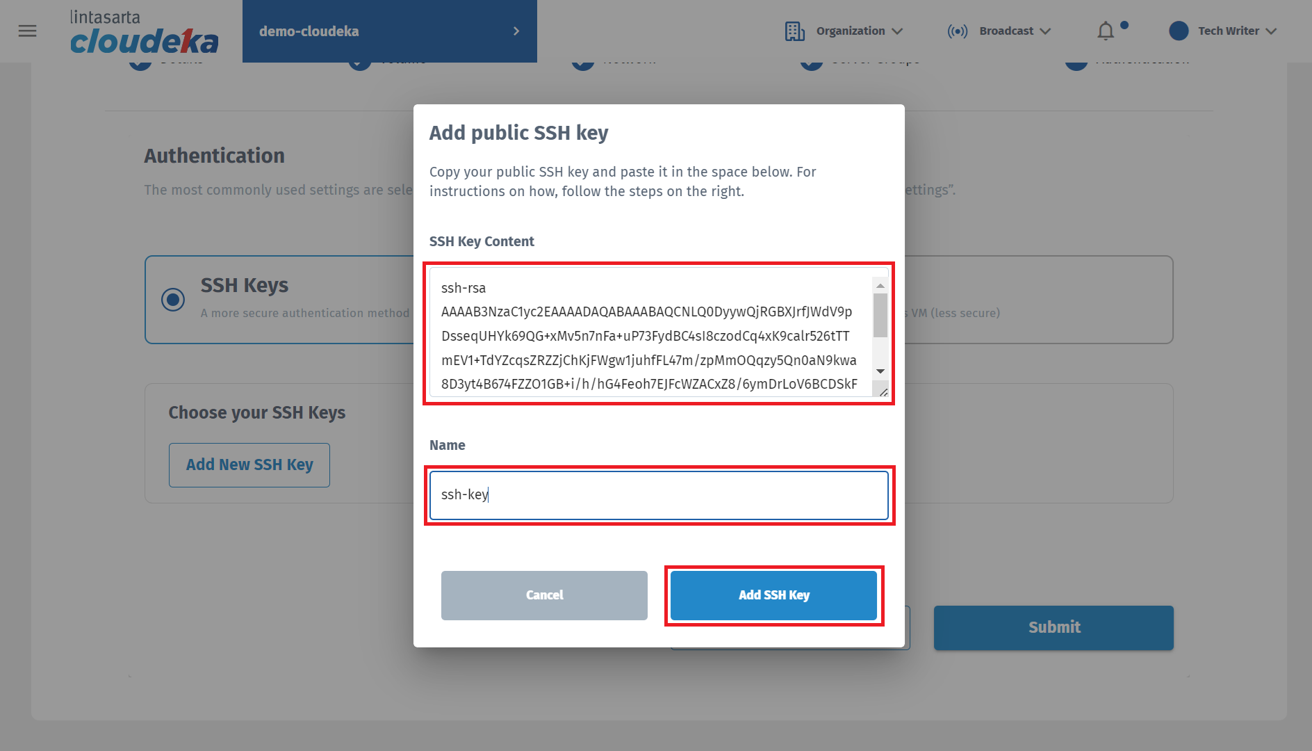 SSH Keys, more secure than standard passwords. To be able to use authentication you must first create an SSH Key before you can use this method. For further explanation of the steps for creating an SSH key, see this chapter in sub-chapter 2.6 Create SSH Key for Auth Method. Following are the steps to add an SSH key: