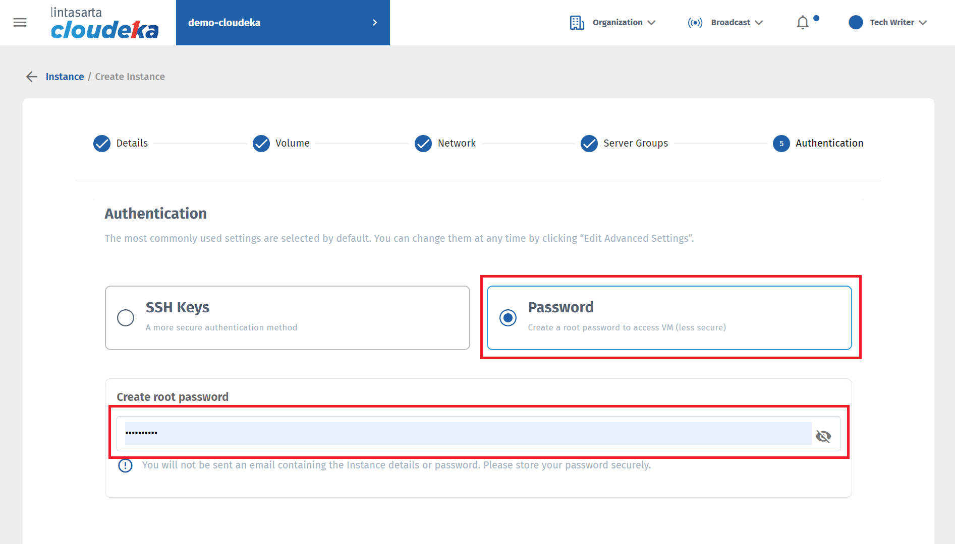 In the fifth stage, namely Authentication, there are two authentication methods that can be used to enter the VM. The authentication methods that can be used are SSH Keys and Passwords.