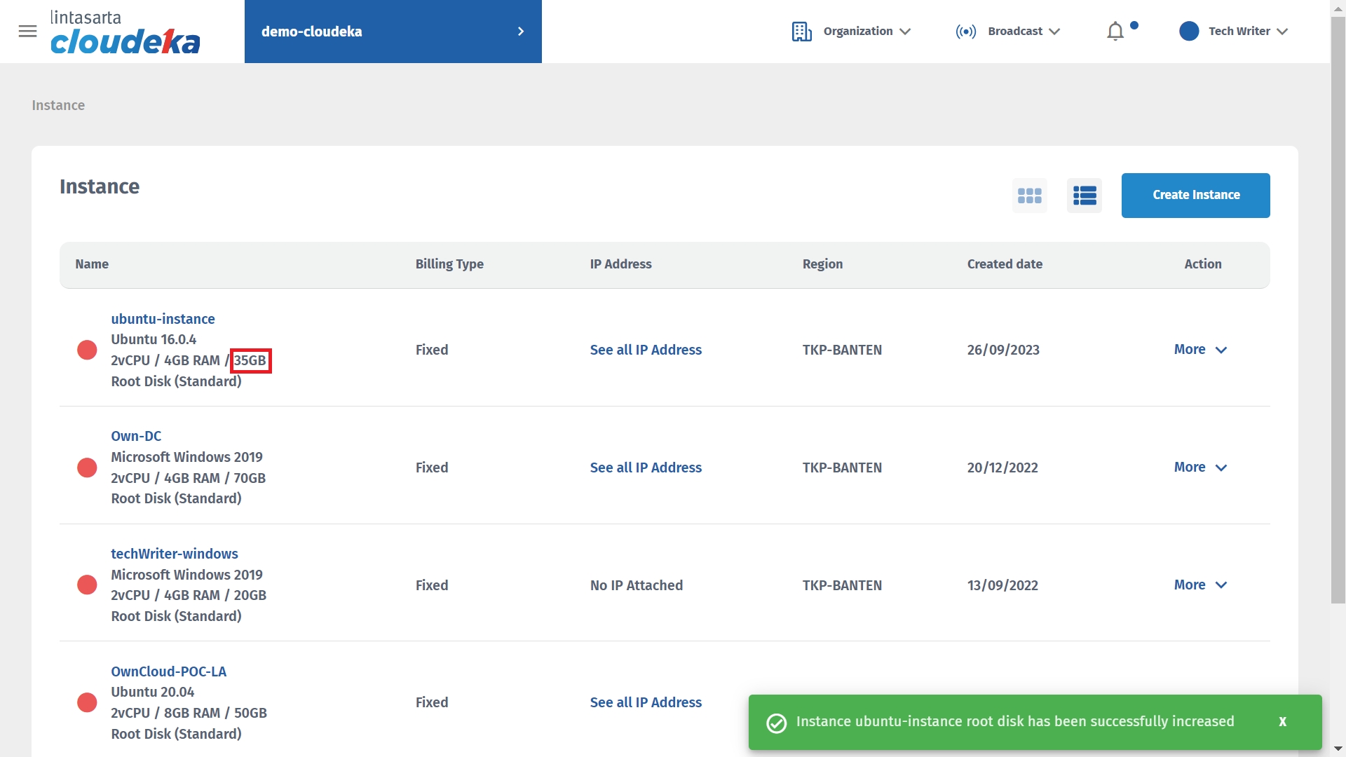 You can increase the disk root size when your VM instance needs additional storage space. You can only resize the root disk to increase its size, you cannot reduce the size of the root disk.
