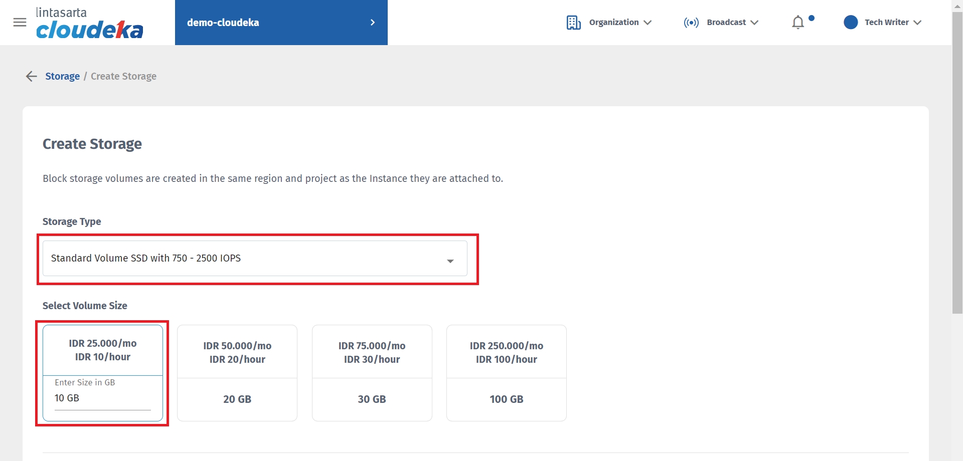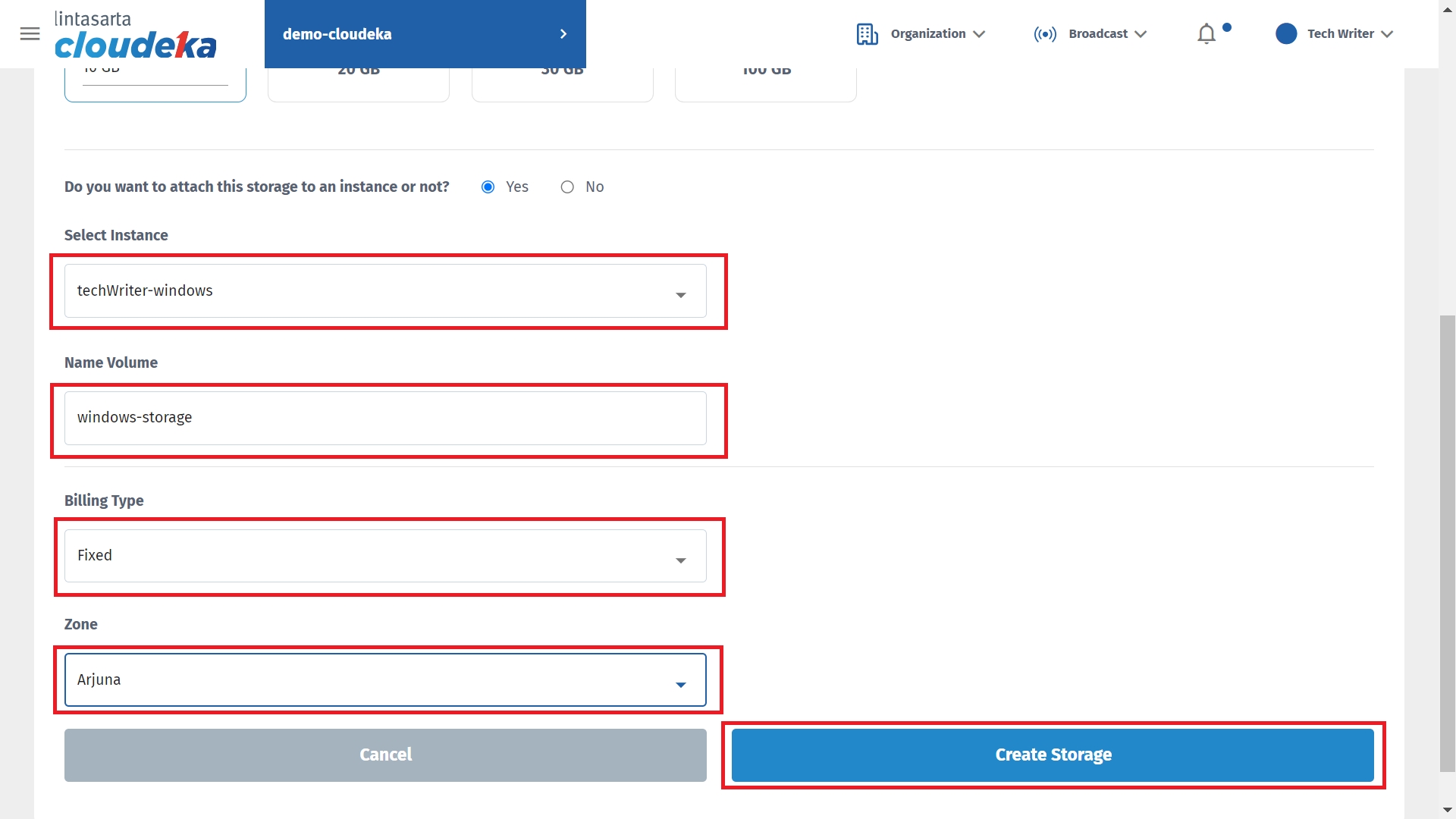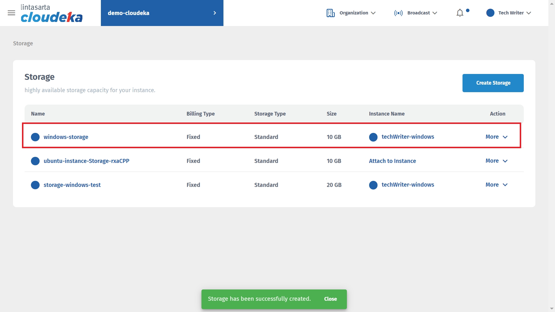 - There will be a notification if the data is saved successfully "Storage has been successfully created".