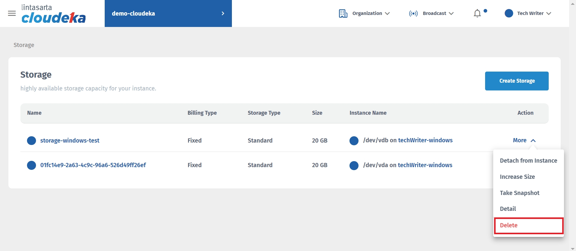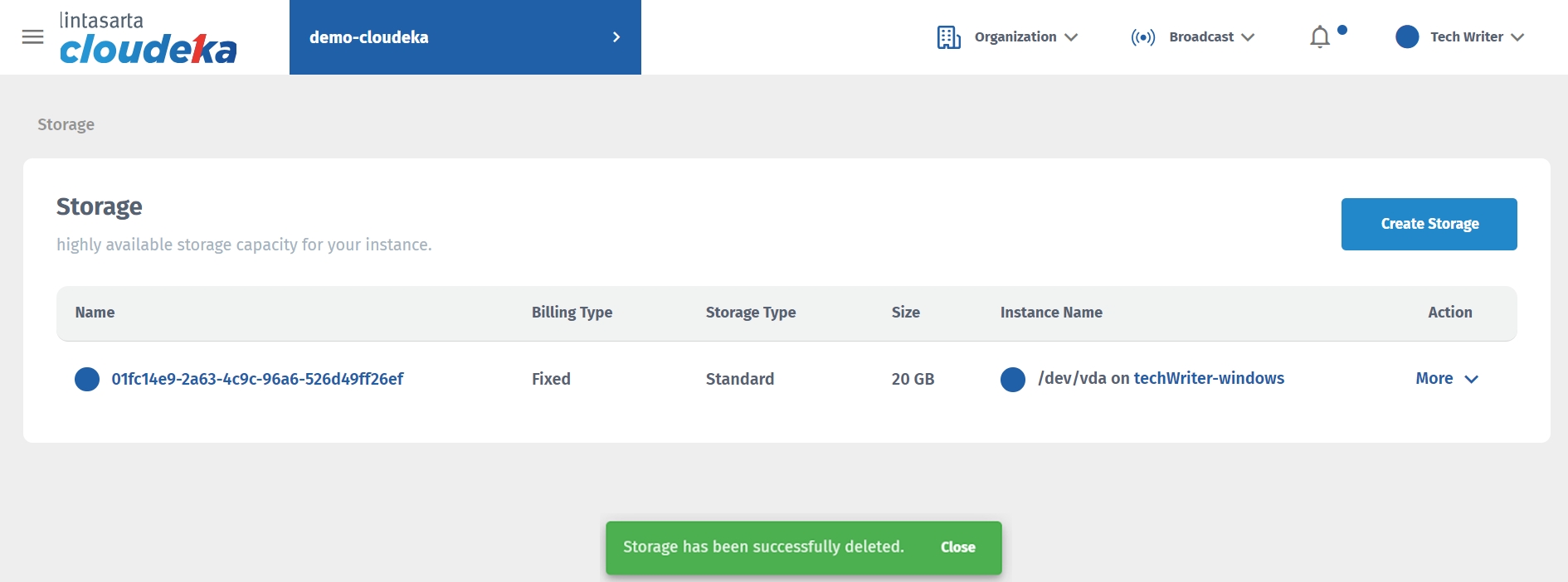 If the Storage is successfully deleted, a pop up will appear "Storage has been successfully deleted".