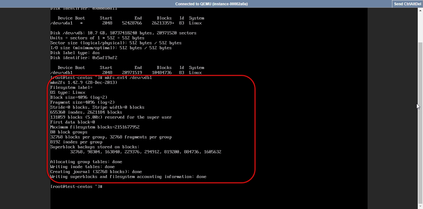 mkfs.ext4 /dev/vdb1