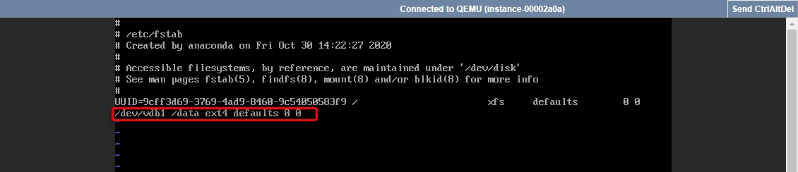 /dev/vdb1 /data ext4 default 0 0