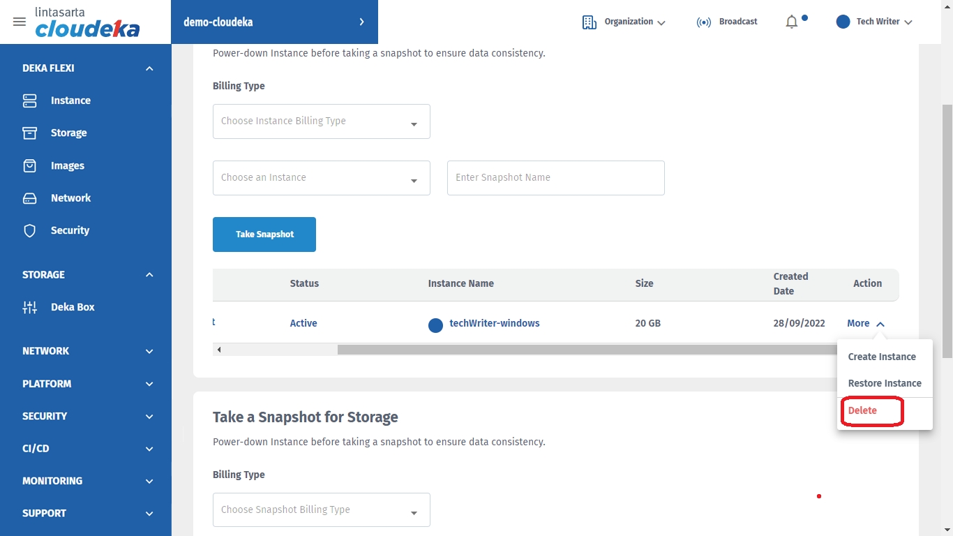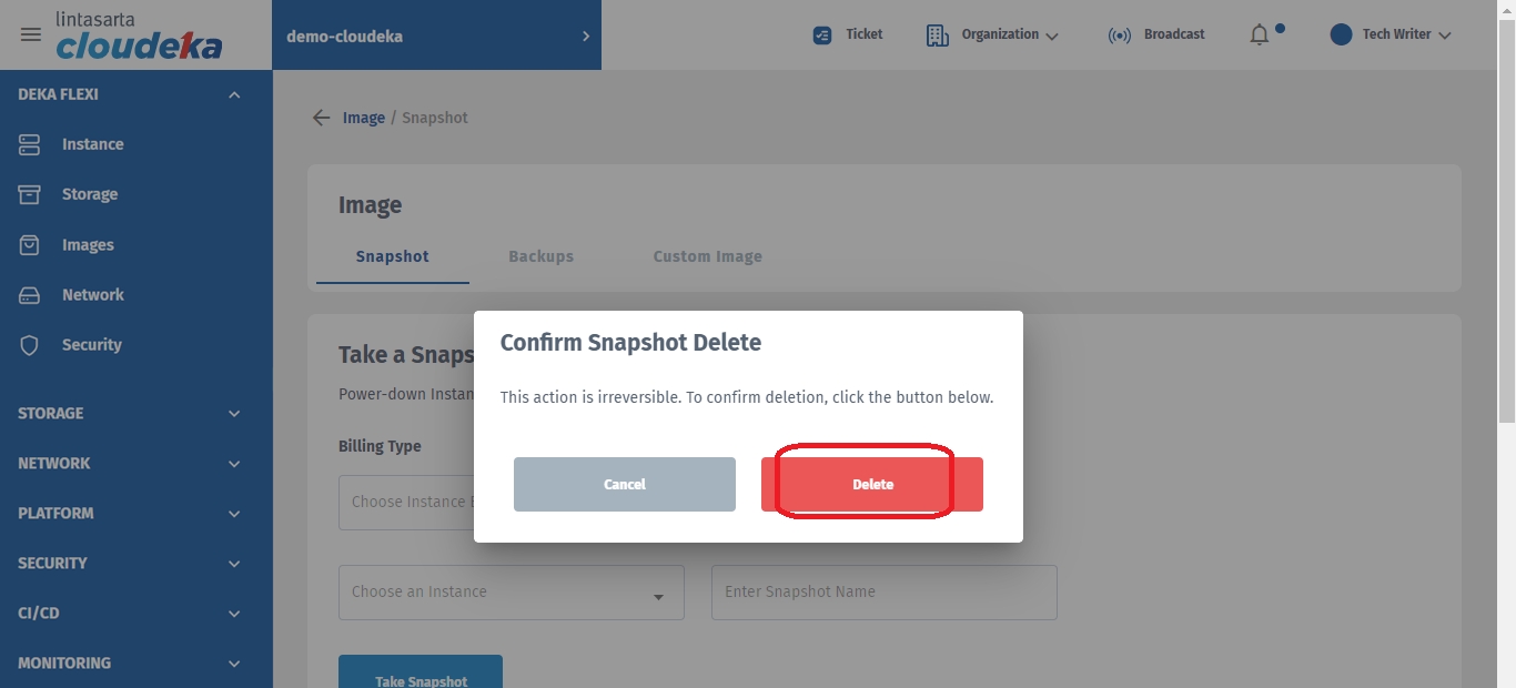 A pop-up will appear to confirm whether you really want to delete the snapshot or not. Click the Delete button if you want to delete or Cancel to cancel deleting the snapshot.