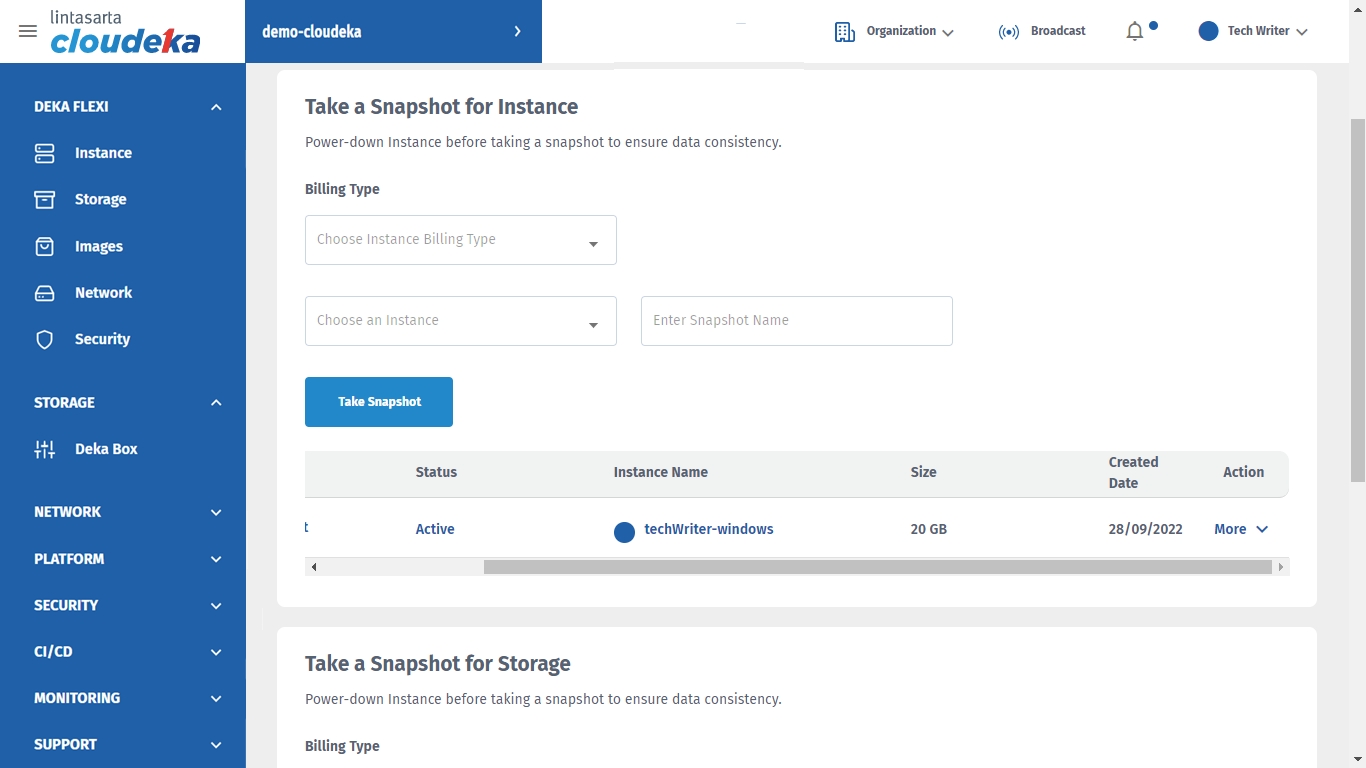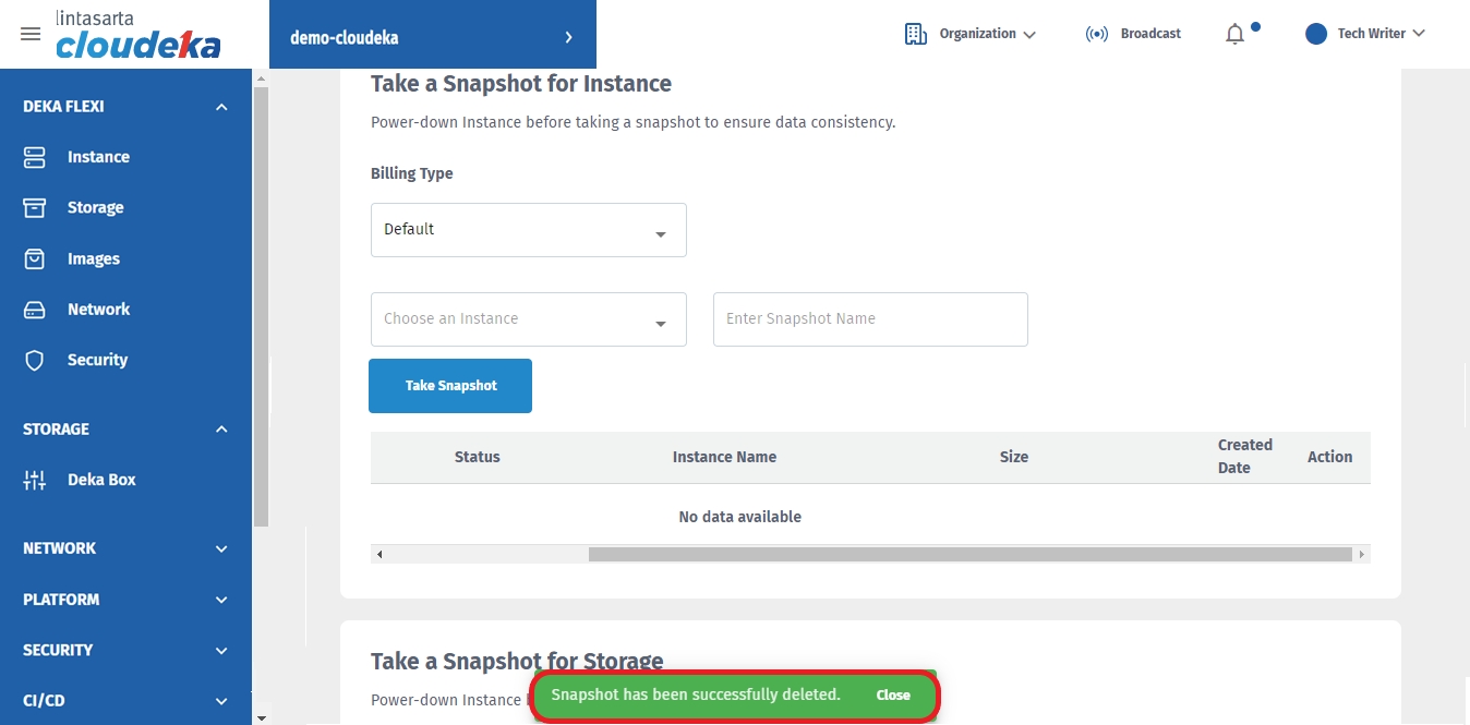 There is a notification if the snapshot has been successfully deleted "Snapshot has been successfully deleted".
