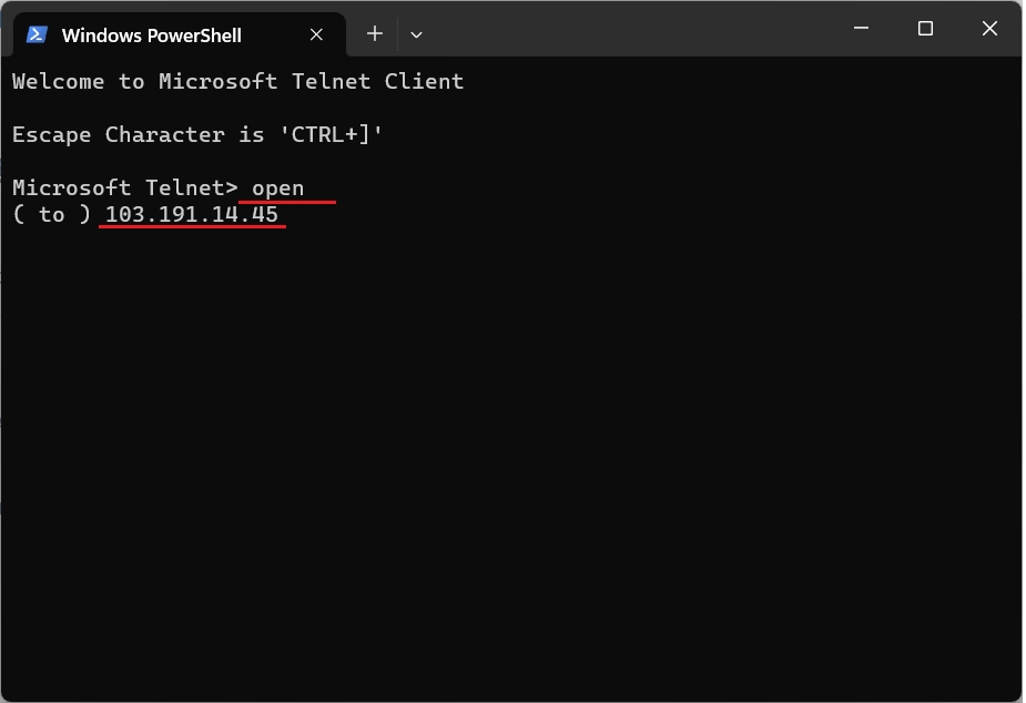 Open the terminal on your computer. In this guide, use the terminal for the Windows operating system. If you are using a Mac operating system you can just type telnet [Destination IP] [Port]. To check whether the port that has been configured in the DNAT configuration can be used by typingTelnet on the terminal.