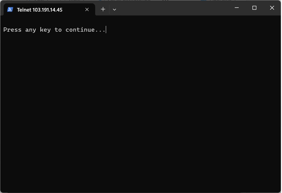 The message "Press any key to continue" appears, which means the IP address 103.191.14.45 can be used.