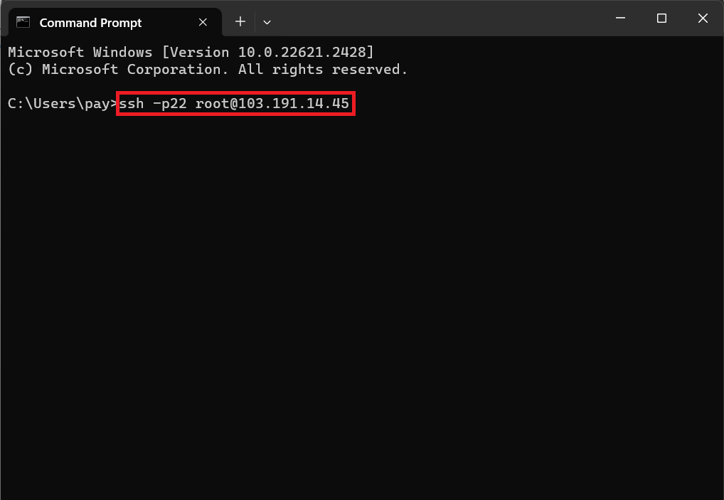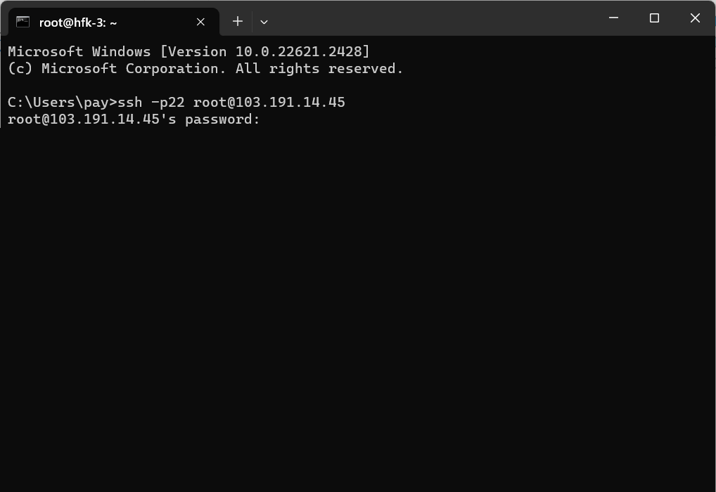 This is the final step to be able to access the virtual machine using a computer terminal by opening a new computer terminal then typingssh -p\[Port] \[IP Address] then press Enter.