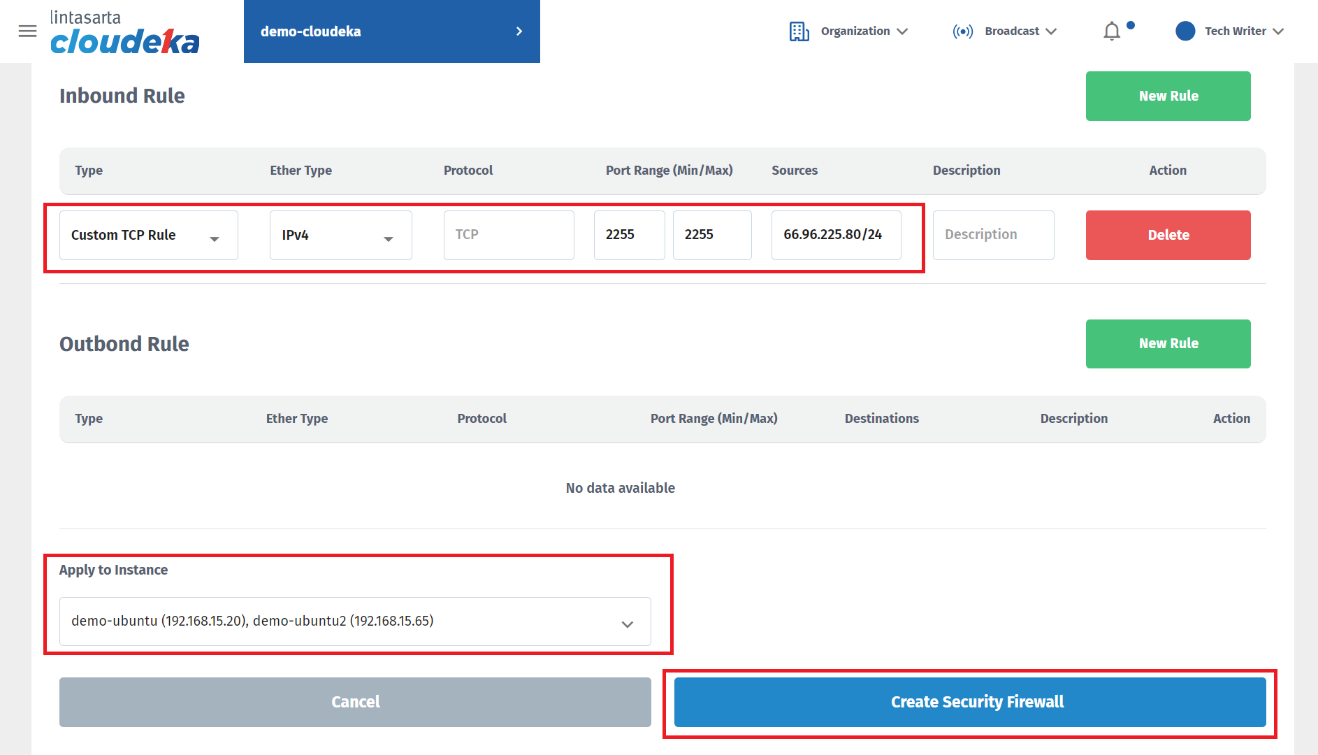 <figure><img src="https://putri.box.cloudeka.id/cloudeka-assets/static/images/22dekarouter/22.99%20config-firewall.png" alt=""><figcaption><p>Create Firewall</p></figcaption></figure>