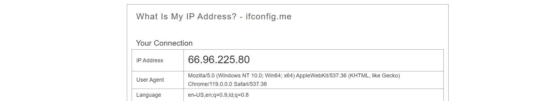 After successfully configuring the NAT Gateway, the next step is to configure the firewall on the Cloudeka portal service via the Security menu to add the IP address used by your computer. First check the IP address your computer uses in ifconfig.me in your browser.