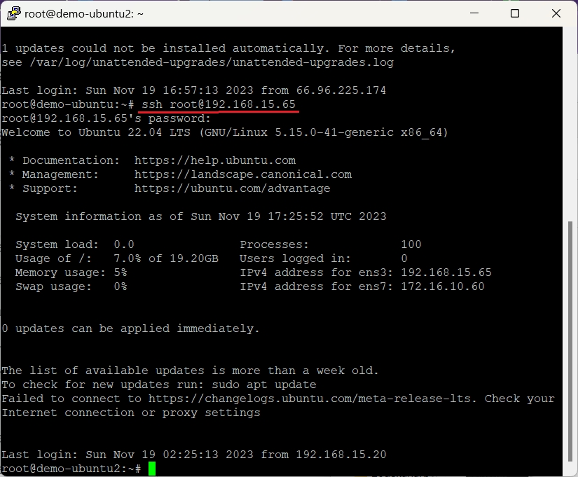 You can access a virtual machine demo-ubuntu2 that uses putty by using the syntax "ssh [email protected]". Enter the password that the virtual machine demo-ubuntu uses.