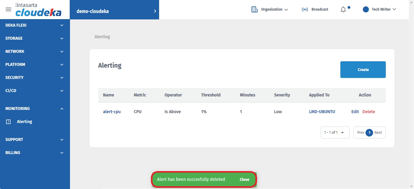 There will be a notification if the Alert is successfully deleted "Alert has been successfully deleted".
