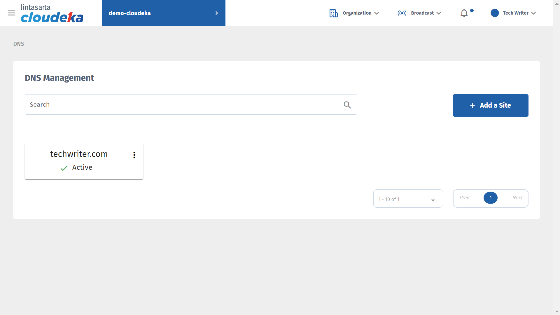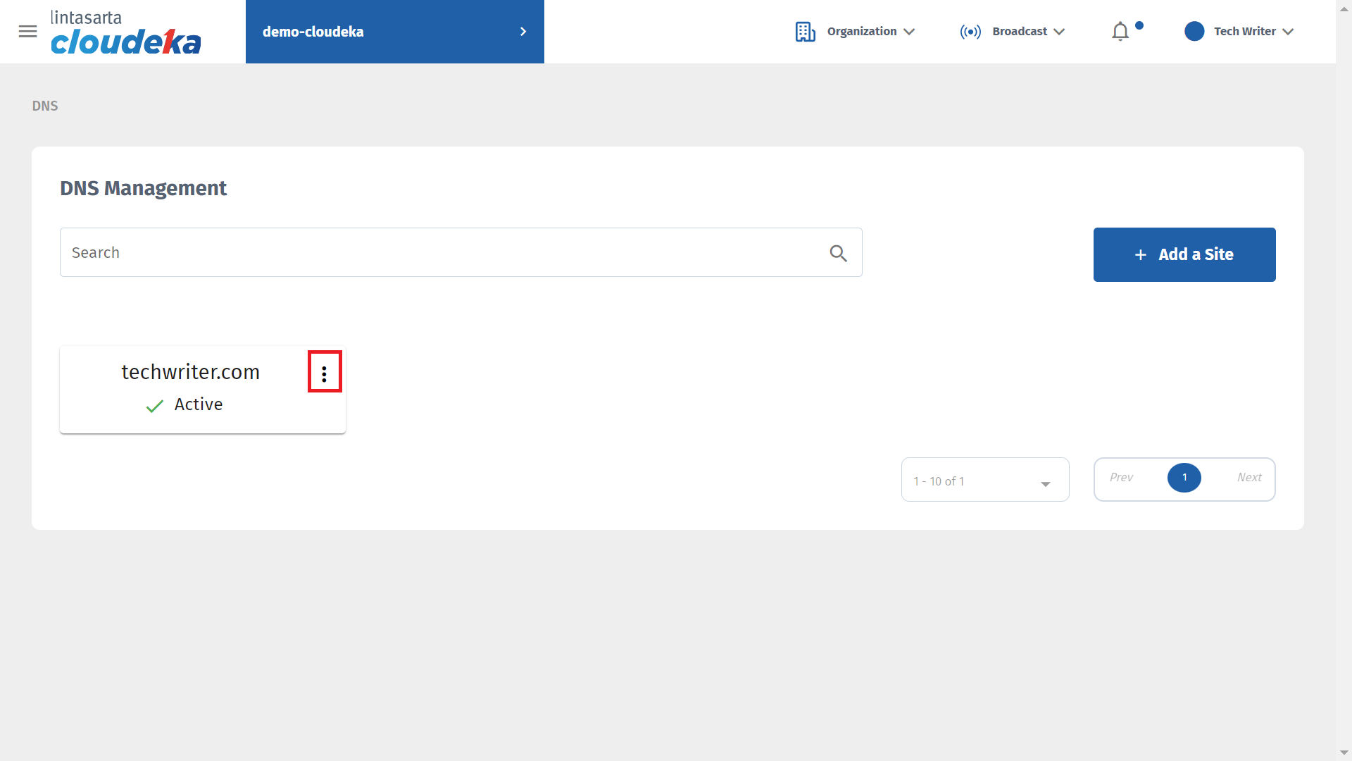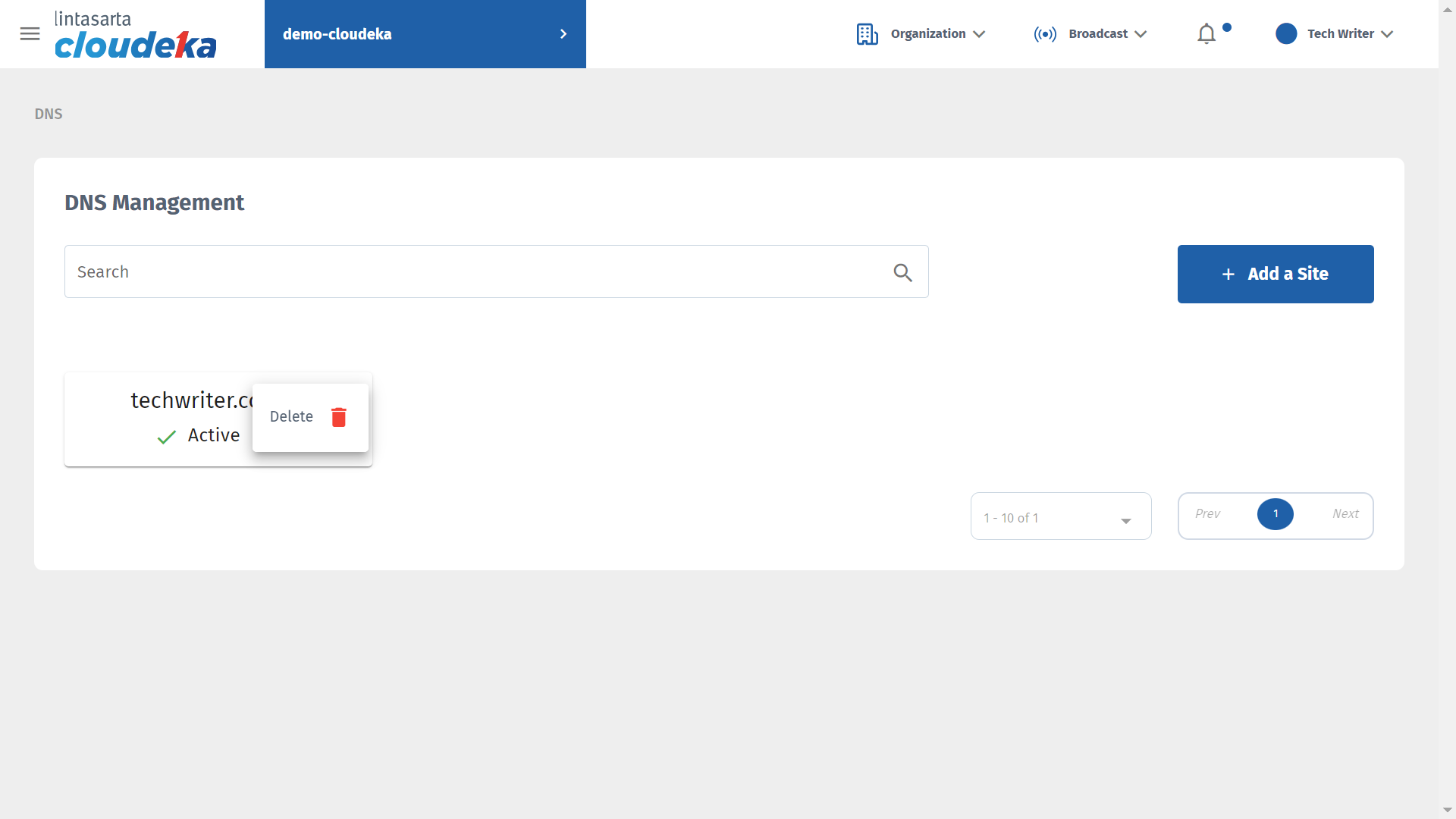 * A notification appears **DNS has been successfully deleted techwriter.com**