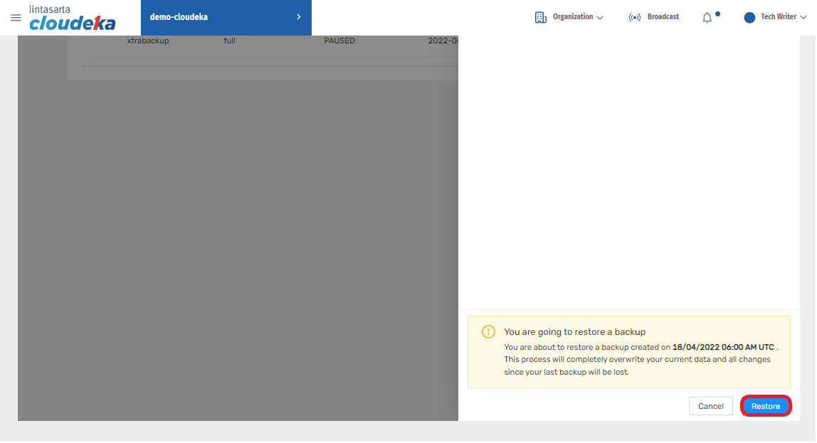 Backups Tab