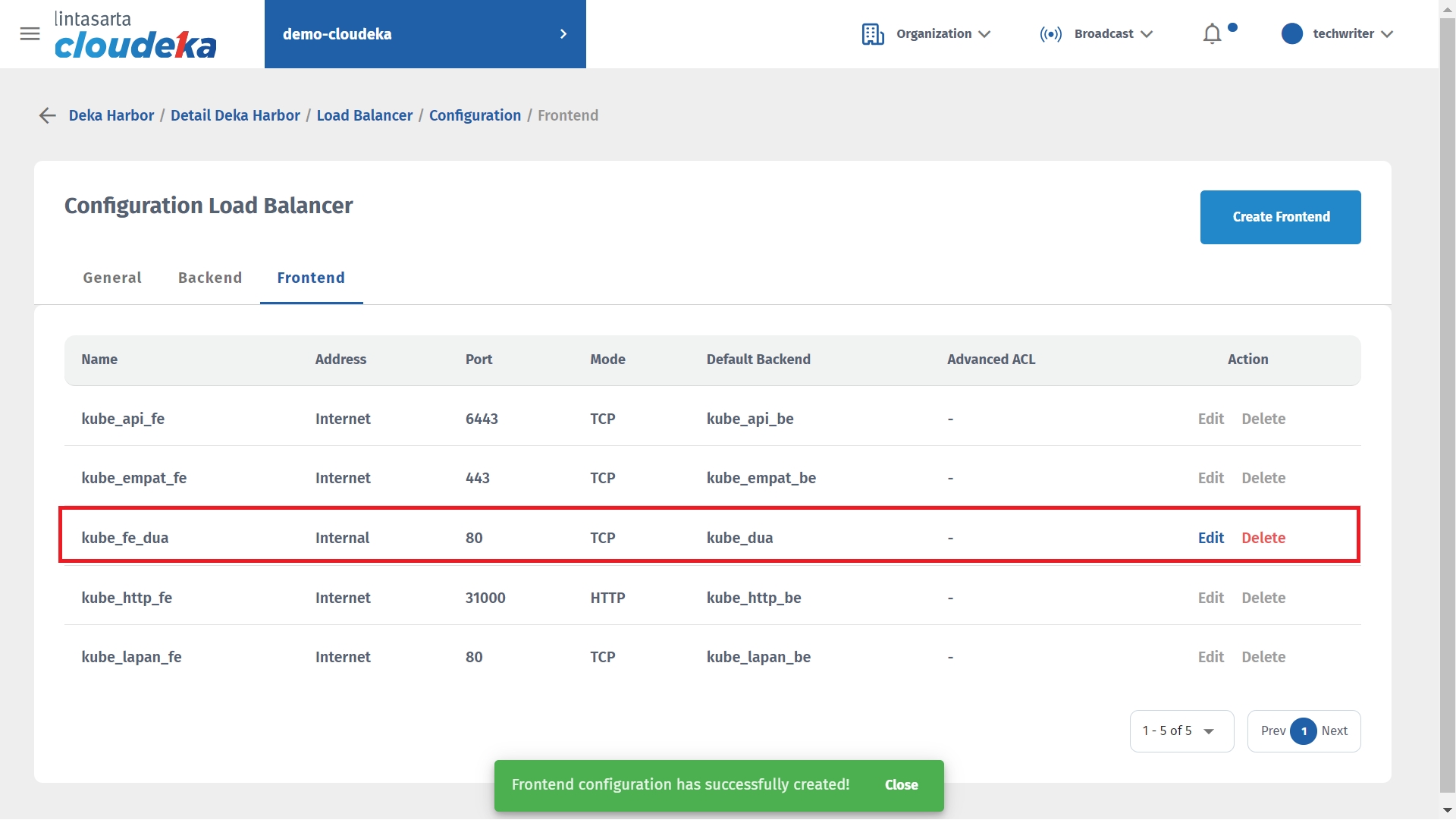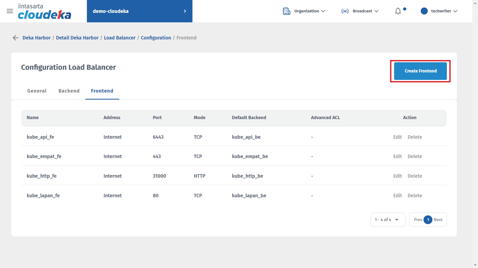 If you want to remove the Load Balancer configuration in Deka Harbor, make sure you first remove the configuration on the frontend. Here are the steps to remove the configuration on Load Balancer: