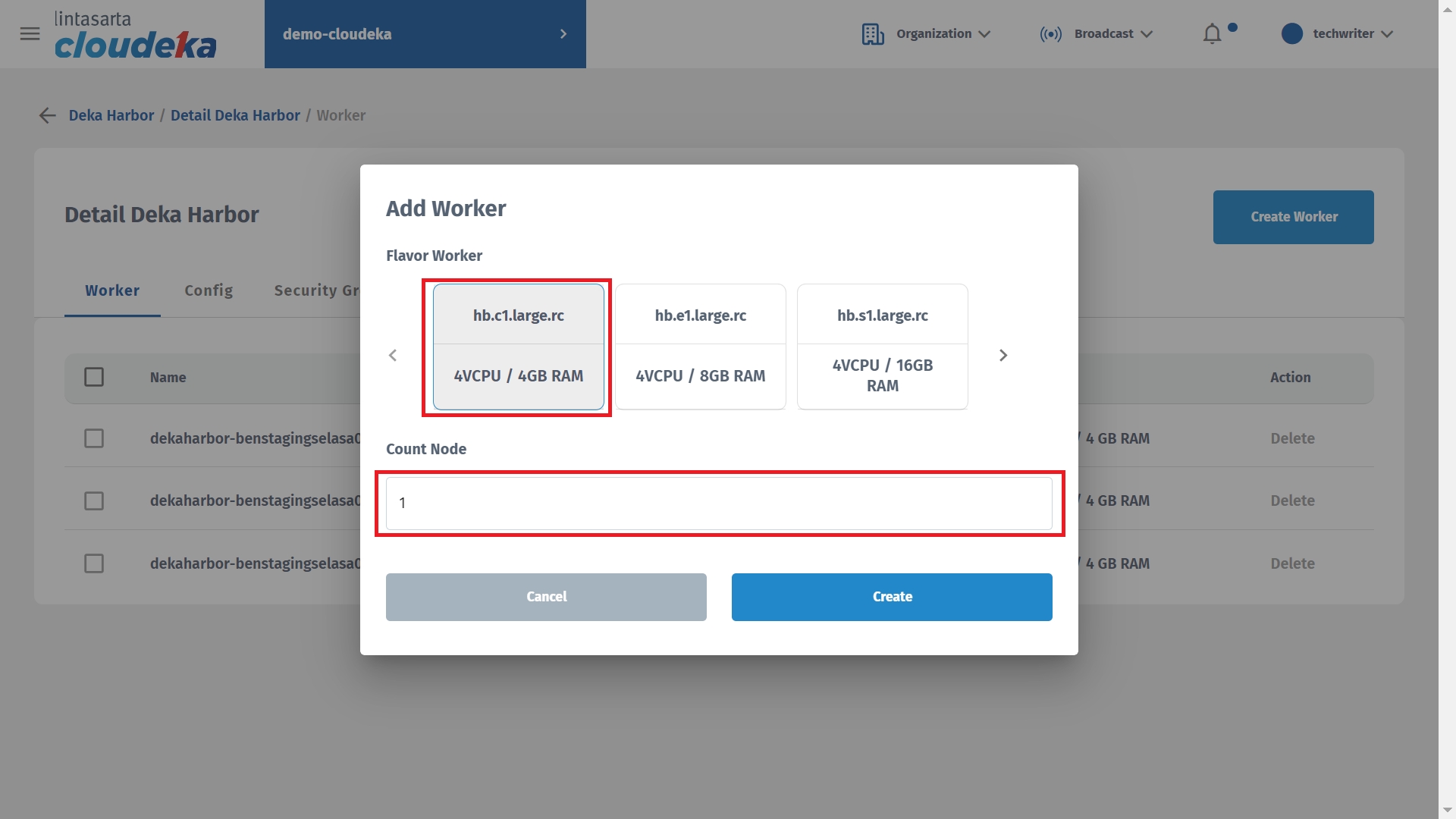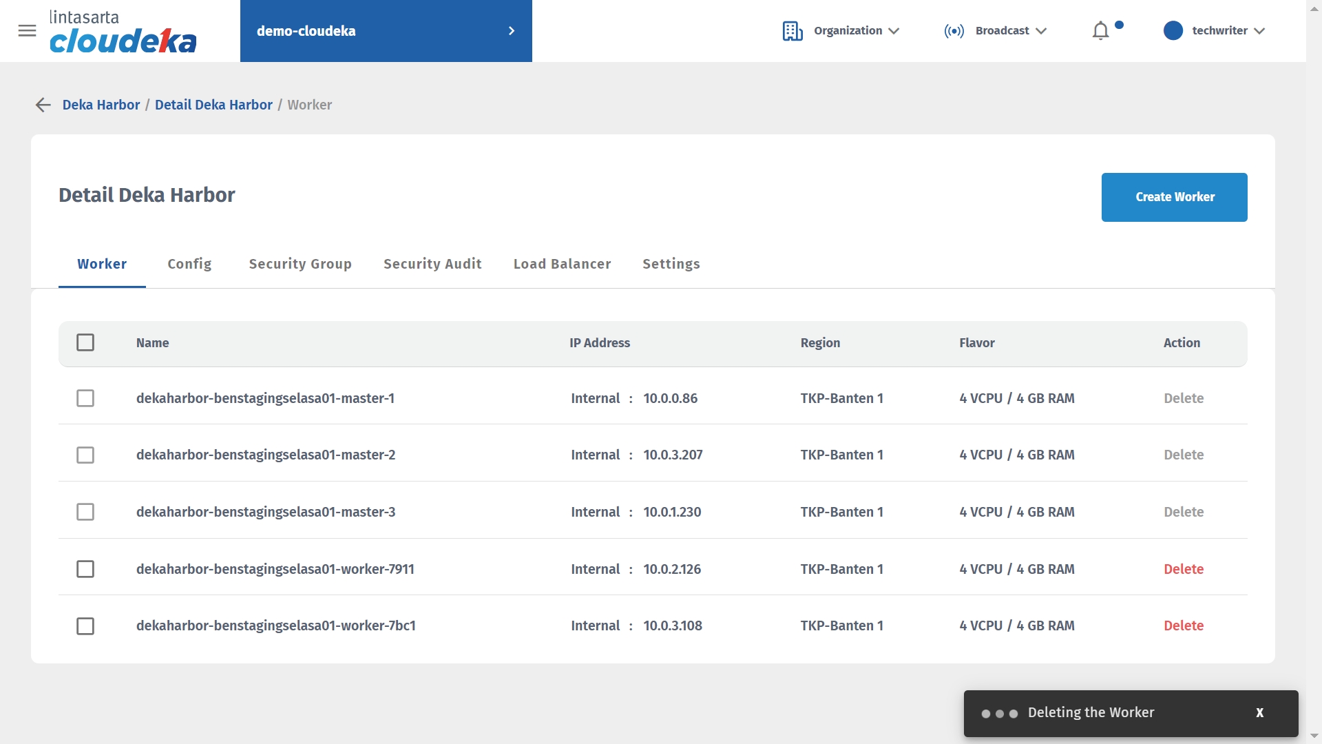 On workers you can configure workers by adding or removing workers on Deka Harbor. Workers that cannot be deleted according to the limit entered by Superadmin.