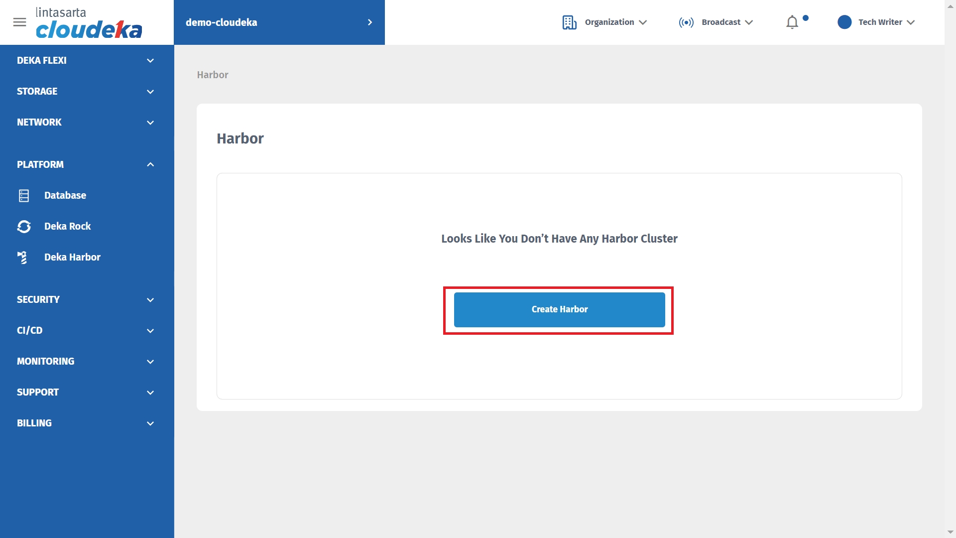- On the Cloudeka portal service page, select the Deka Harbor menu on the Platform.